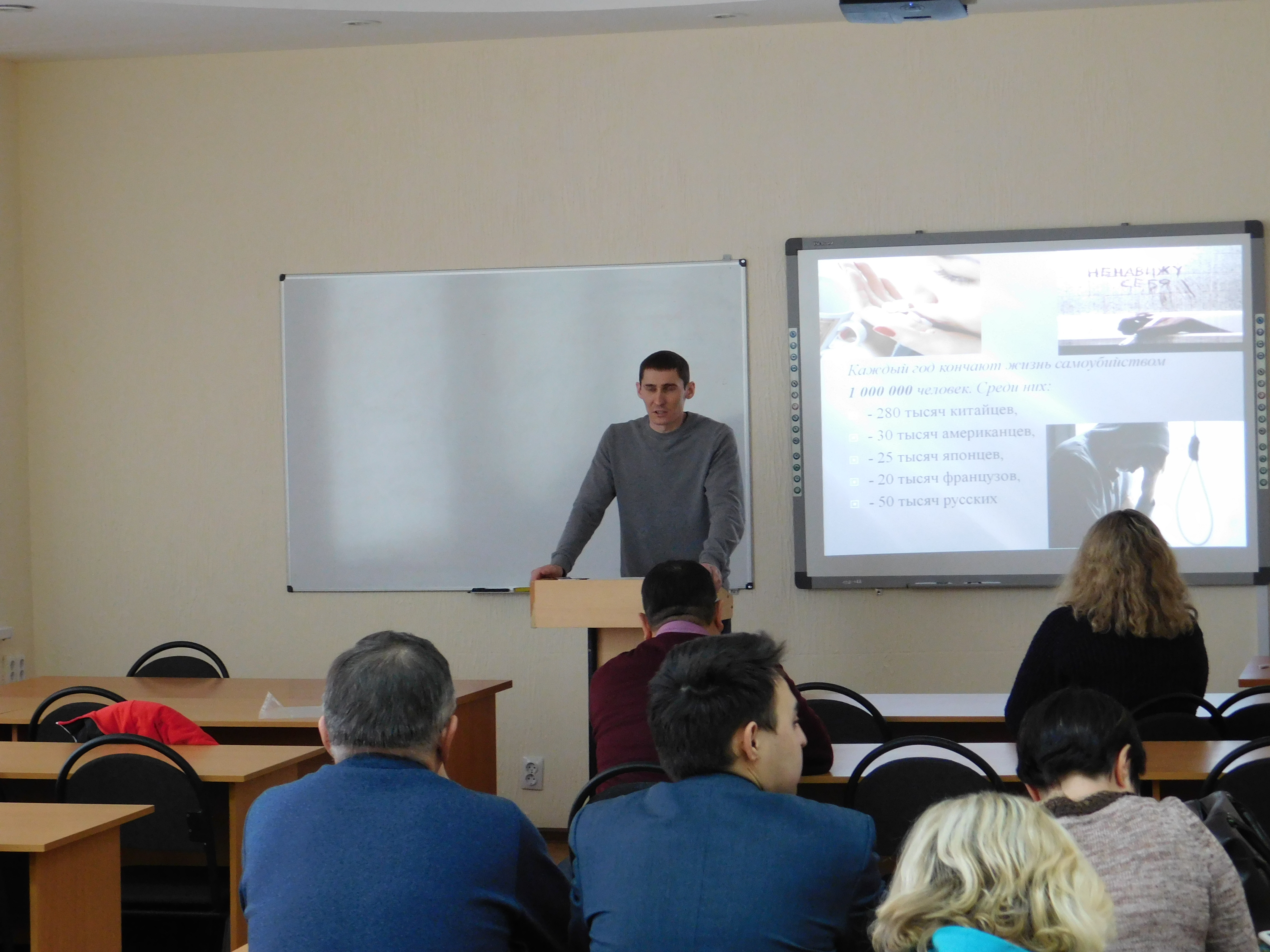 26 января 2017 года в Колледже БГПУ им. М.Акмуллы состоялся Совет кураторов, где обсуждались злободневные вопросы, касающиеся подросткового суицида. Перед кураторами выступили: председатель Совета кураторов Н.И.Казыханова, фельдшер колледжа А.И.Шарипов с докладом об основных видах подростковых неврозов; куратор гр. 9Т-22 Л.В.Гафарова с мониторингом жизненных интересов студенческой среды; куратор гр. 9ПО-41, 9ПО-51 Н.Н.Лобанова с обзором социальных сайтов, провоцирующих подростковый суицид.