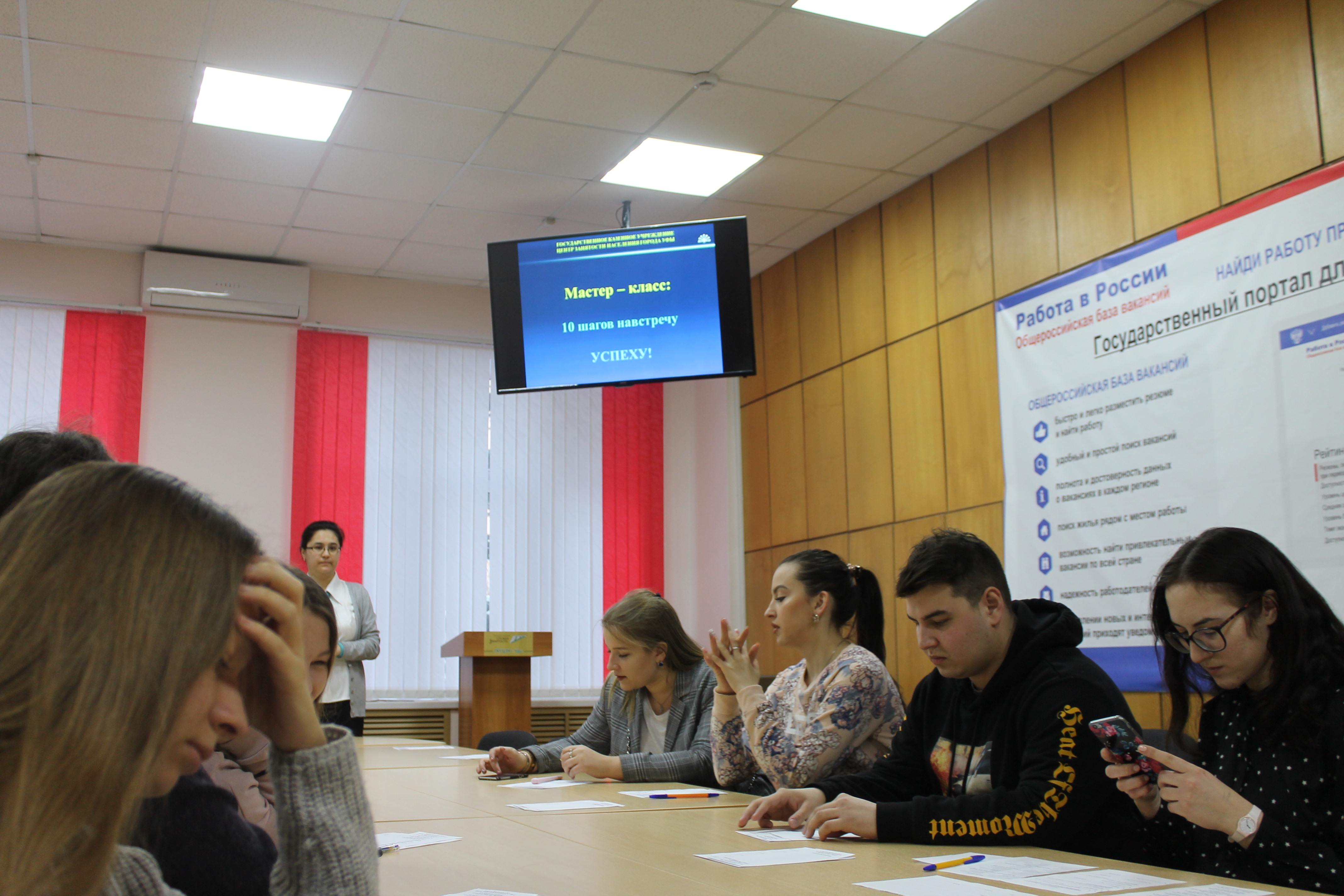 7 февраля в Центре занятости населения города Уфы состоялась специализированная ярмарка вакансий для молодежи и студентов. Студенты выпускных групп специальностей «Музыкальное образование» и «Изобразительное искусство и черчение» Колледжа БГПУ им. М. Акмуллы приняли активное участие  в работе мастер-класс «10 шагов навстречу успеху!"В мастер-классе студентам рассказали, как найти работу мечты, научили правильно составлять резюме, чтобы работодатель заинтересовался им, как пройти собеседование, правильно оформить портфолио и сколько часов потратить на поиск работы. Кроме того студенты прошли анкетирование, получили возможность задать интересующие их вопросы. Гумеров Данил и Саломасов Игорь, студенты группы 9ИЗО-51, продемонстрировали диалог «Поисковых» телефонных звонков. Студенты пополнили свой багаж полезной информацией о поисках работы и узнали все маленькие хитрости, как заинтересовать своей кандидатурой работодателя.