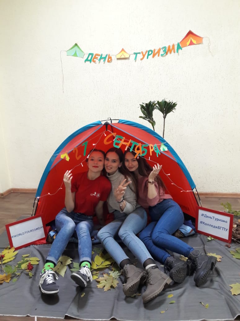 27 сентября в Колледже БГПУ  прошел Квест, посвящённый Международному Дню Туризма. По традиции студенты старших подготовили разнообразные конкурсы, свежий видеоролик о рабочих буднях специальности. Конечно  же не обошлось и без атрибутов активного туризма, желающие могли сфотографироваться в фотозоне: Туристическая палатка.