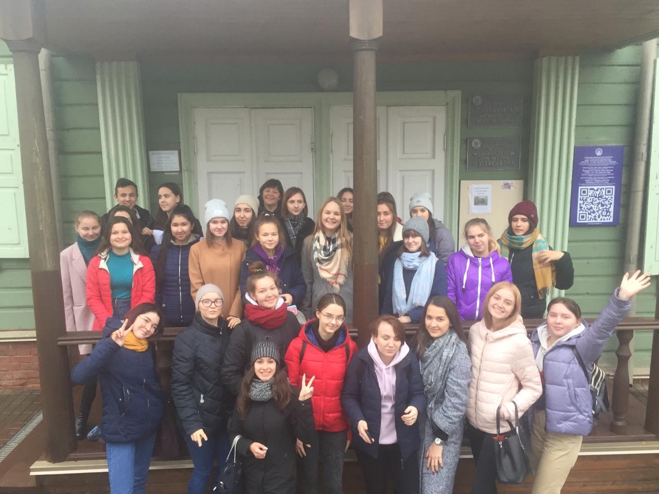 Мемориальный Дом-музей С.Т. Аксакова был открыт в 1991 году в родовом имении писателя, являющемся памятником архитектуры середины XVIII века. Здесь с 1795 по 1797 проживала семья писателя. За годы существования Аксаковский музей постепенно завоевал негласное почетное звание одного из культурных центров нашей республики. В  стенах этого музея был проведен урок родной литературы СС тудентами первого курса спеиальноси «Земельно-имущественные отношения». (Преподаватель Крыжановская Ю.В.).  Ребята узнали о  детстве Сергея Тимофеевича Аксакова, о его семье и,  и конечно, познакомились с его литературным наследием. В музее очень много интересных экспонатов, но  удивили рукописные  книги.  Нам сейчас  сложно представить, что книги писались вручную, причем таким красивым почерком, ровненькими строчками, с украшениями и картинками, прямо диву даешься. Какой же это был титанический труд! Урок оказался очень интересным.
