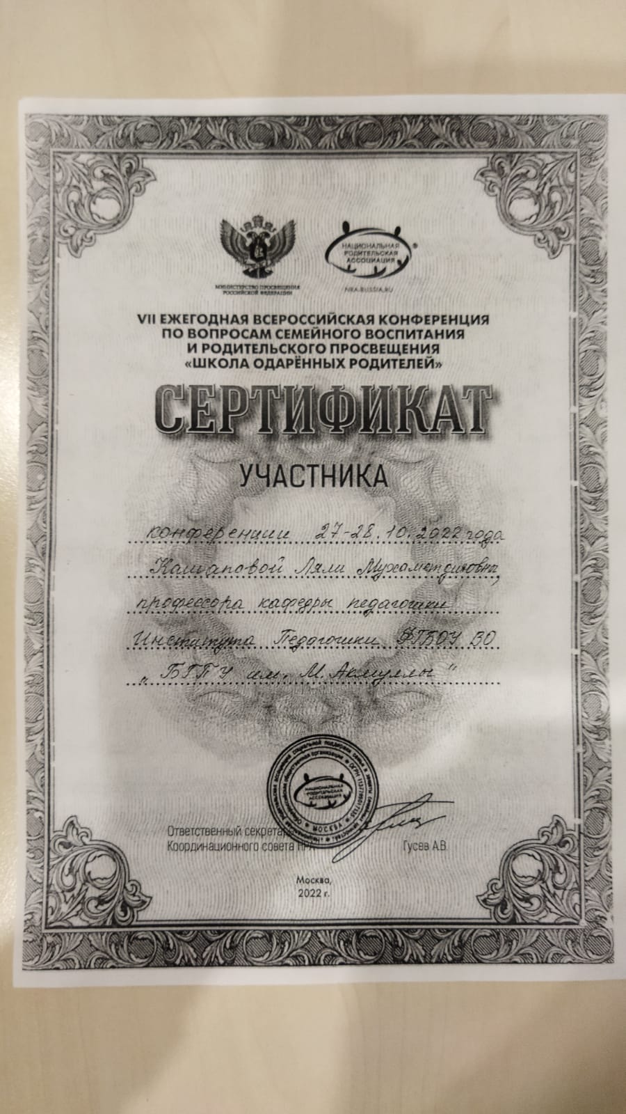 27-28 октября 2022 года профессор кафедры педагогики Кашапова Ляля Мухаметдиновна приняла участие в VII Ежегодной всероссийской конференции по вопросам семейного воспитания и родительского просвещения "Школа одаренных родителей"