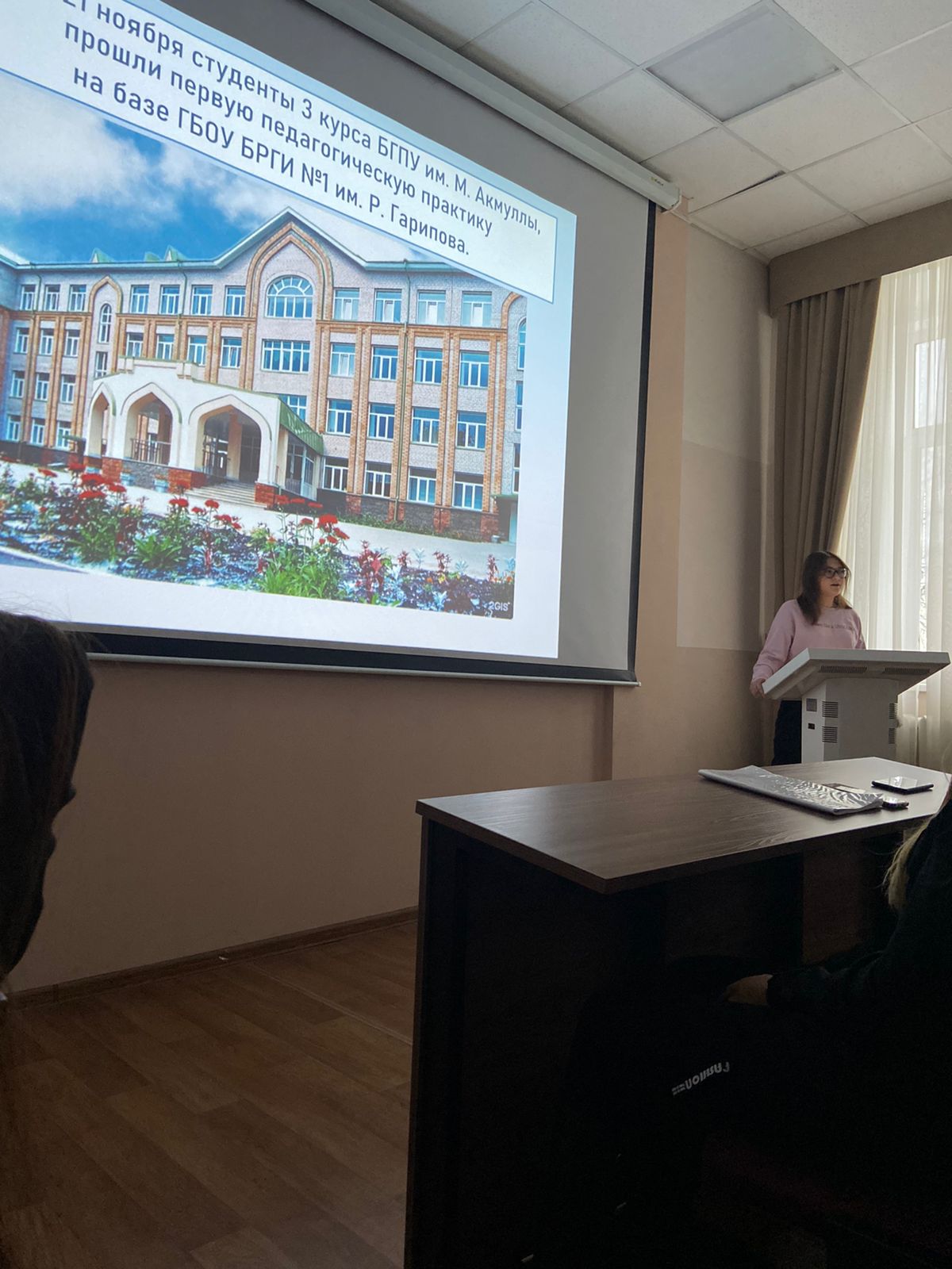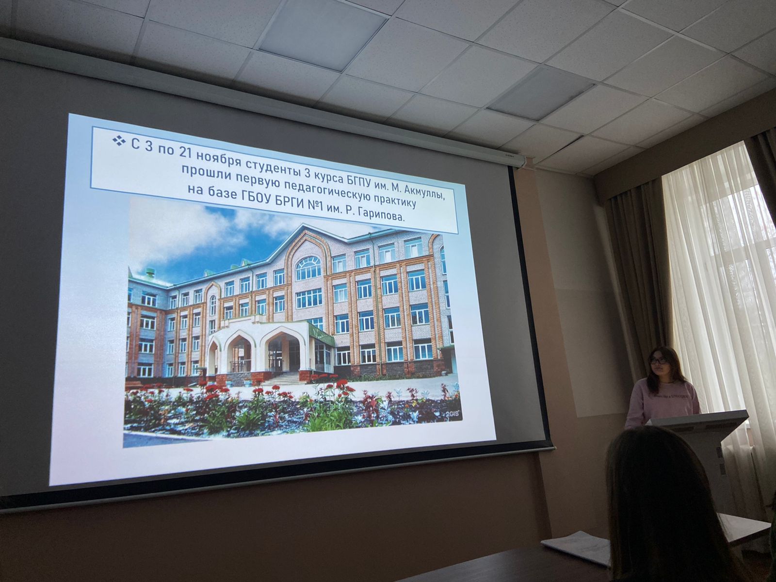Вот и закончилась первая педагогическая практика студентов 3 курса Факультета башкирской филологии БГПУ имени М. Акмуллы, которая продолжалась с 3по 21 ноября 2022 года. Студенты проходили практику на базе БРГИ №1 имени Рами Гарипова и гимназии № 20 имени Ф. Х. Мустафиной. Практиканты выполняли функции помощников классного руководителя, кроме этого многие студенты попробовали себя и в роли учителей, проводивших уроки.