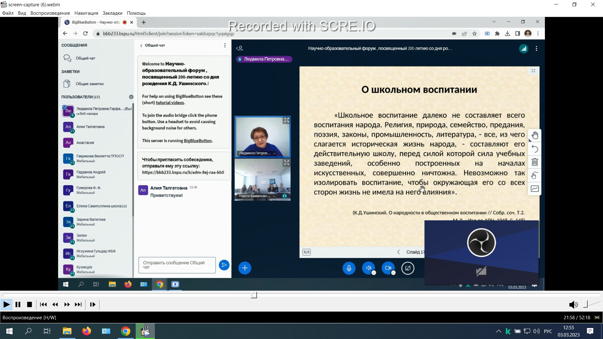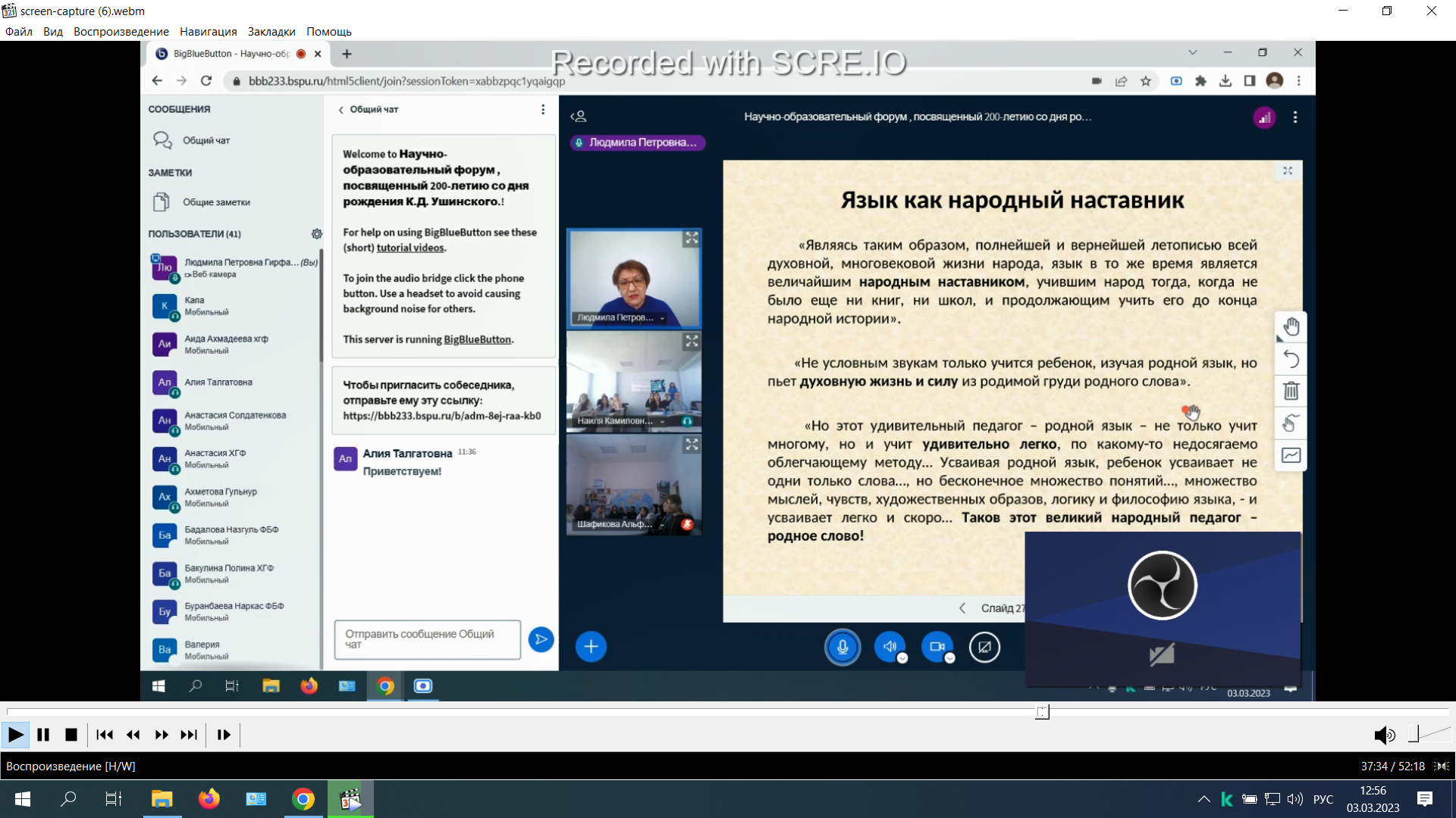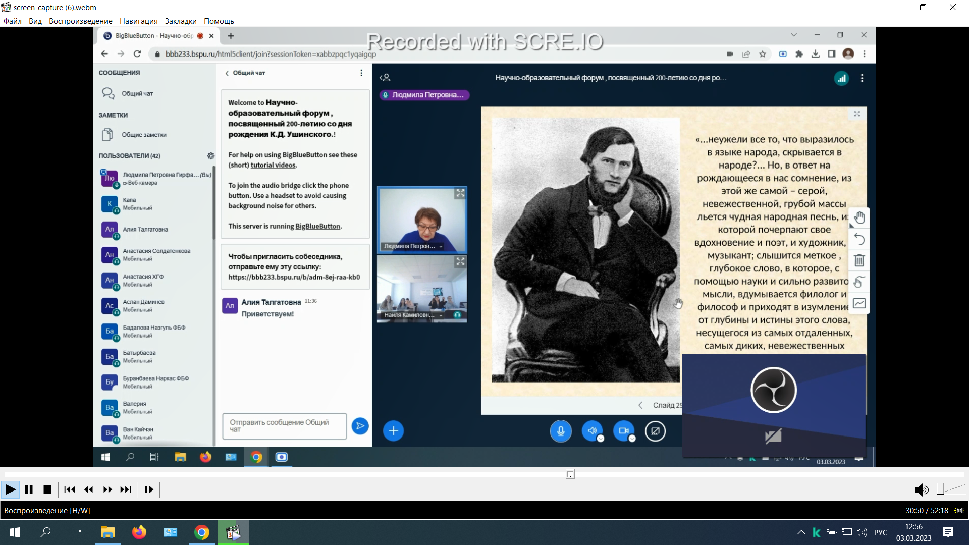 3 марта 2023 г. состоялась открытая интерактивная лекция «Идея народности воспитания в педагогическом наследии К.Д. Ушинского».