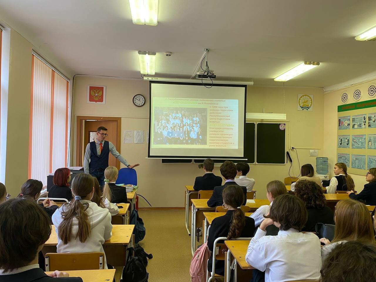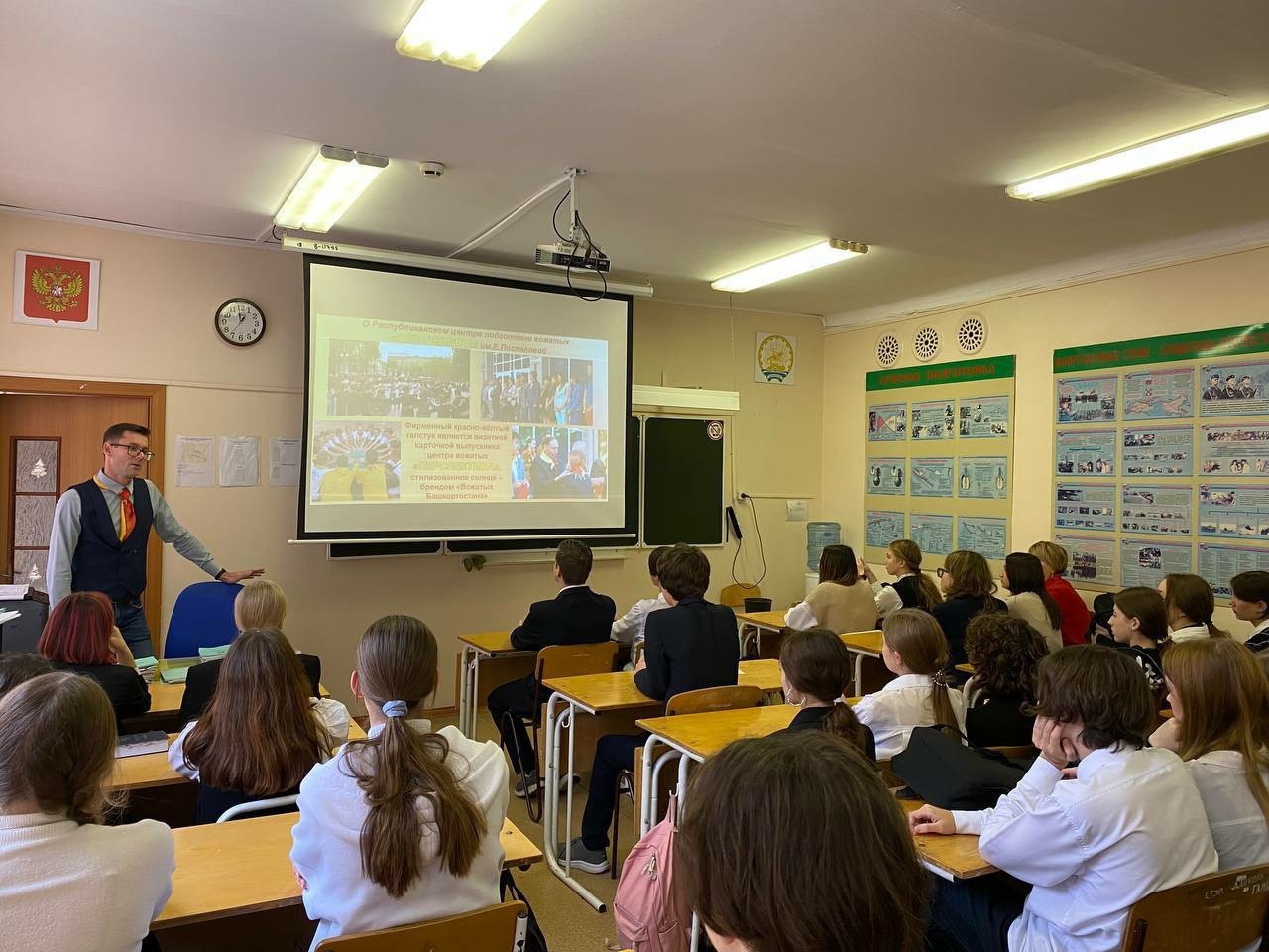 Дударенко Алексей Валерьевич представил школьникам 10-х классов МАОУ Гимназия 64 им. В. В. Горбатко г. Уфы путь становления преподавателя высшей школы