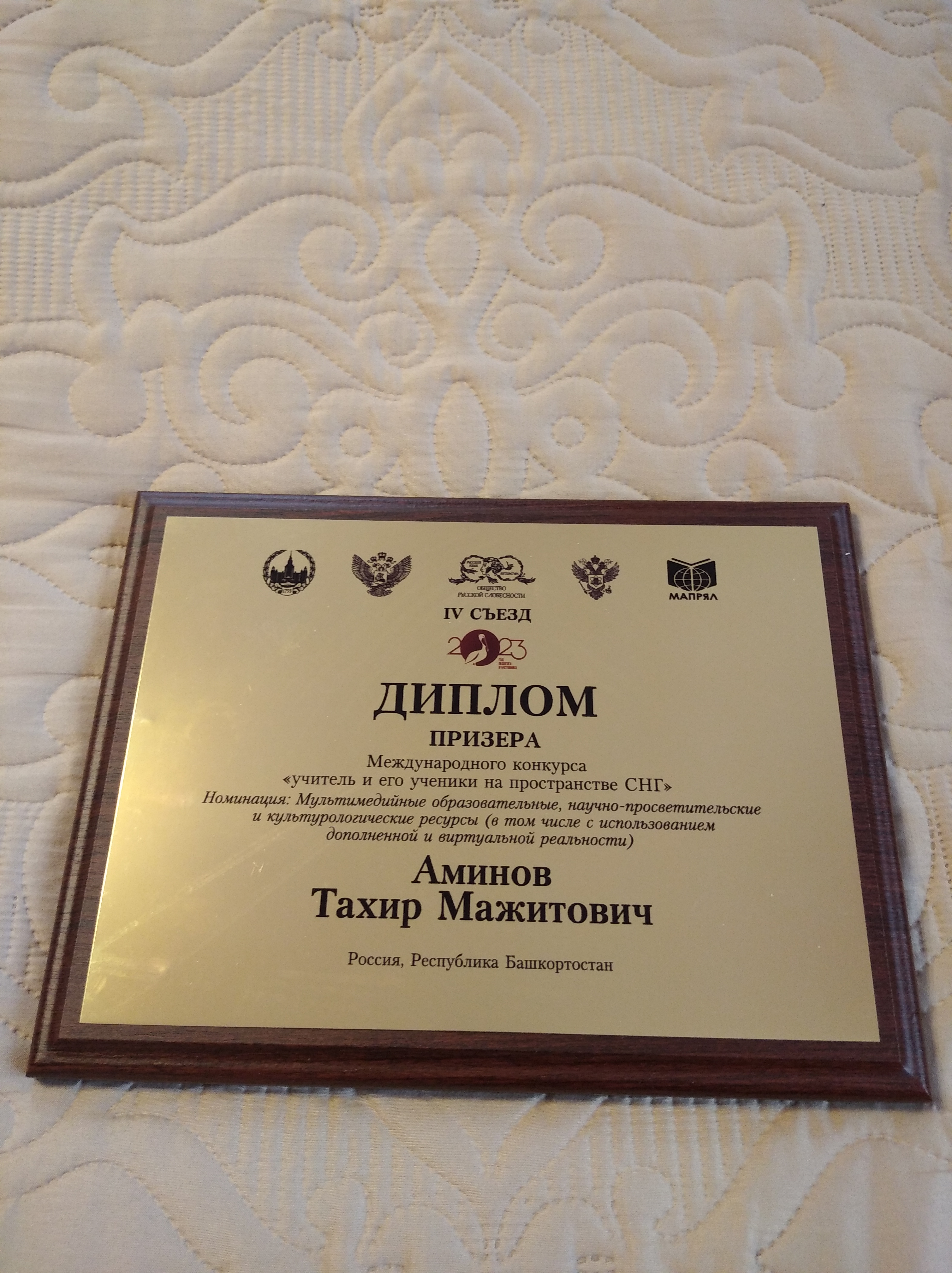 Важной частью открытия форума стала церемония награждения победителей Международного конкурса «Учитель и его ученики на пространстве СНГ», посвященного 200-летию К. Д. Ушинского. В номинации «Мультимедийные образовательные, научно-просветительские и культурологические ресурсы (в том числе с использованием дополненной и виртуальной реальности) победителем стал профессор Акмуллинского университета Тахир Мажитович Аминов. Он стал единственным представителем России, вошедшим в число победителей.