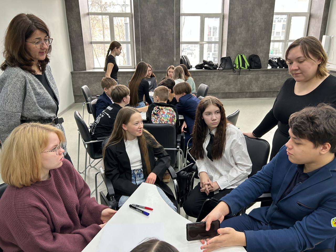 «Вместе к переменам» — так назвали свой социальный проект учащиеся 8-х классов Лицея № 5. Любой социальный проект начинается с желания что-то изменить.  Как увлекательно  и с пользой проводить школьные перемены? Чем можно заинтересовать ребят разных классов и как осуществить свои идеи? Об основных этапах разработки и реализации социального проекта учащимся Лицея № 5 и Центра образования № 10 еще в декабре рассказала  Нуриханова  Наиля  Камиловна, кандидат педагогических наук, доцент кафедры педагогики. Ученикам 9А класса Центра образования № 10 тоже понравилась идея организации школьных перемен.  И в январе состоялась следующая встреча с ребятами в Институте непрерывного профессионального образования. Заместитель директора ИНПО Минюк Эльвира Гиндулловна объяснила ребятам  принципы разработки  дорожной карты социального проекта и формирования  команды проекта.  Школьными кураторами  социального проекта «Вместе к переменам», которые учащиеся будут реализовывать в своих школах, стали Нусратова Раушания Рауфовна, учитель, вожатая Лицея № 5, и Булатова Ирина Рамиловна, психолог Центра образования № 10. Раушания Рауфовна  и  Ирина Рамиловна 3 марта рассказали своим педагогическим коллективам о проекте.  И уже 4 марта в ИНПО состоялась  следующая  встреча  с проектными командами. Теперь уже ребята подготовили  выступления по дорожным  картам своих проектов.