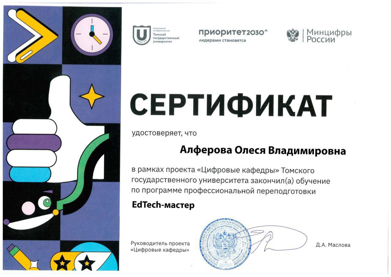 Студентки 3 курса очно - заочного отделения Института педагогики, по направлению 44.03.01. Педагогическое образование, направленности (профиль) Дополнительное образование (воспитательная работа и история), успешно прошли обучение по программам профессиональной подготовки IT-профиля в рамках федерального проекта "Цифровые кафедры". За период с 2024 по 2025 год на программах ТГУ успешно прошли обучение около 2300 студентов из 100 вузов РФ.