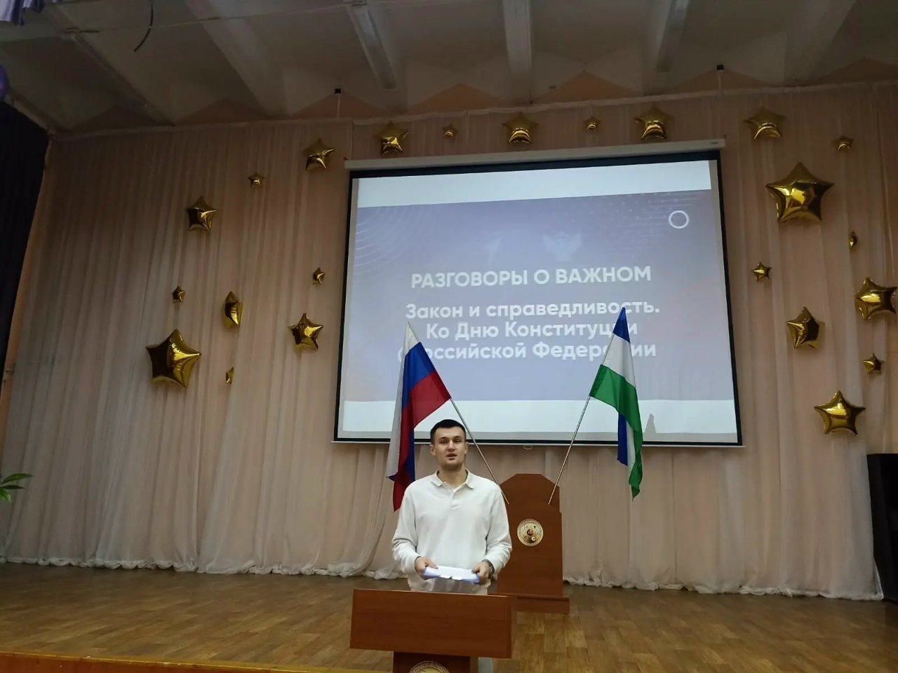 Каждый понедельник студенты проводили «Разговоры о важном», к примеру, была освещена тема « День Конституции РФ», где студенты рассказали ученикам про главный документ РФ, а также показали поучительные видеоролики. Мероприятие было проведено для обучающихся  8-ых  и 5-ых классов.