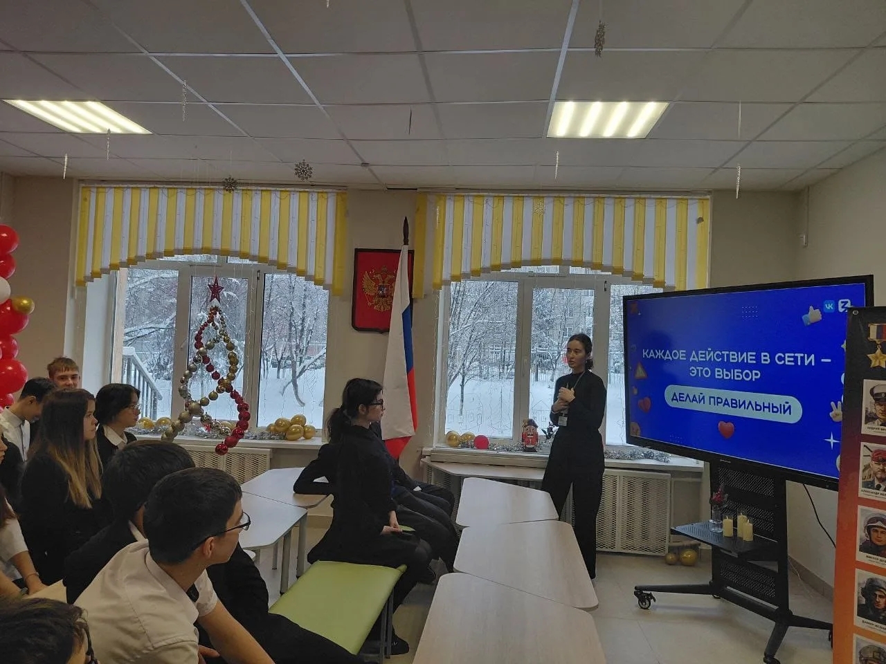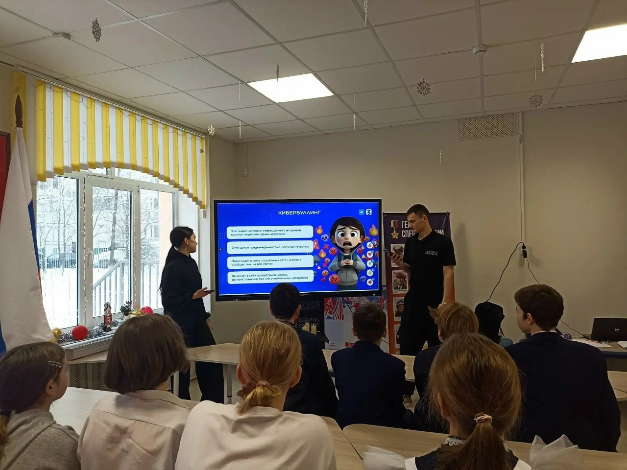 Для 5, 6, 8 классов были проведены мастер-лекции по темам "Новогодние традиции" и "Кибербуллинг". 6 и 8 классам рассказали про опасность буллинга в интернете, его последствия и что делать, если с ним столкнулись; с 5 классом обсудили какие новогодние традиции соблюдают в каждой семье и какая из них самая интересная, а также посмотрели видеоролик про празднование Нового года в различных странах.