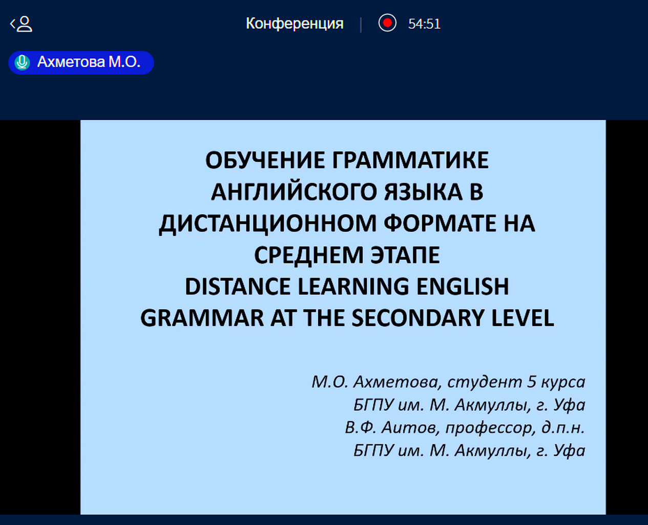 15 декабря кафедра иностранных языков приняла участие в XV Акмуллинских чтениях. 10 студентов, подготовленных преподавателями кафедры, выступили с научными докладами на английском языке на секции «Развитие иноязычного образования в условиях полилингвизма» (модератор: В.Ф. Аитов). На конференции также присутствовали представители разных стран: доктор наук Адель Мэнсилла (Университет Уэстфилд, США), студент БГПУ им. М. Акмуллы Нгеко Муандзиби Деди Рюдней (Конго),  доктор наук Камилла Кейгл (США).