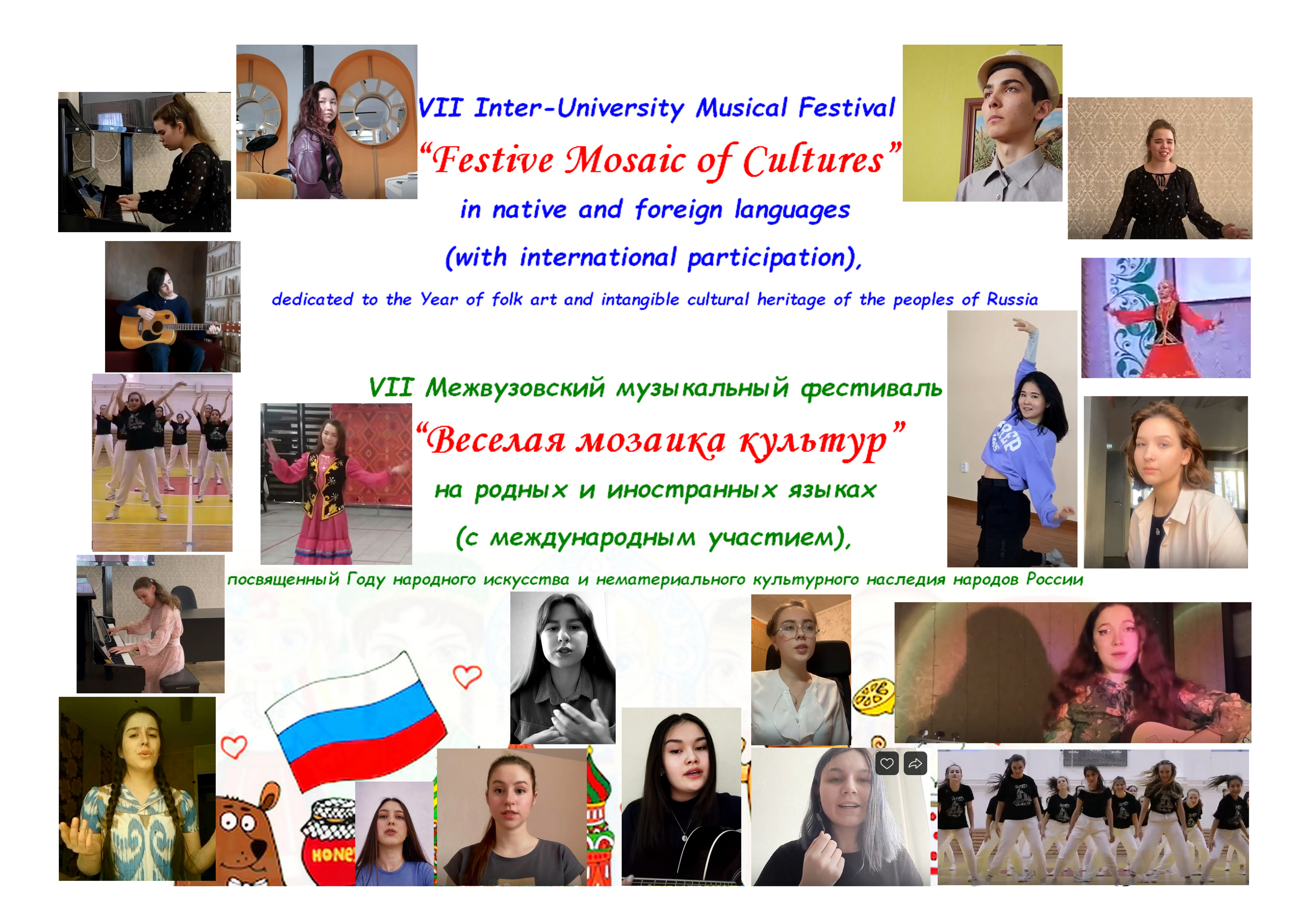 24 марта 2022 года завершился VII Межвузовский музыкальный фестиваль «Festive Mosaic of Cultures» на родных и иностранных языках (с международным участием), посвященный 55-летию БГПУ им. М. Акмуллы, а также Году народного искусства и нематериального культурного наследия народов России. Мероприятие проходило в дистанционном формате. Организатором выступила кафедра иностранных языков Института филологического образования и межкультурных коммуникаций Акмуллинского университета.