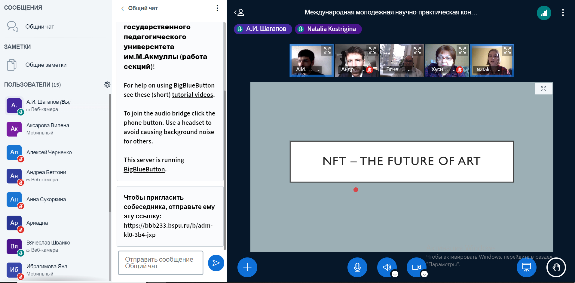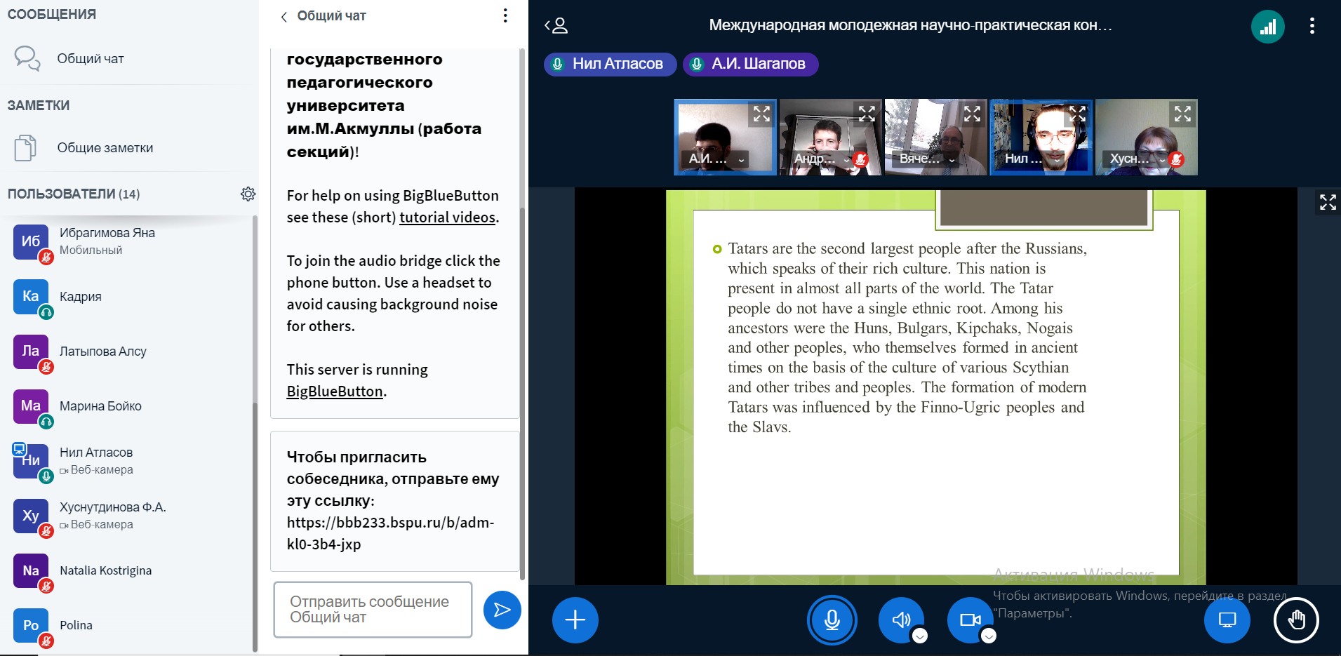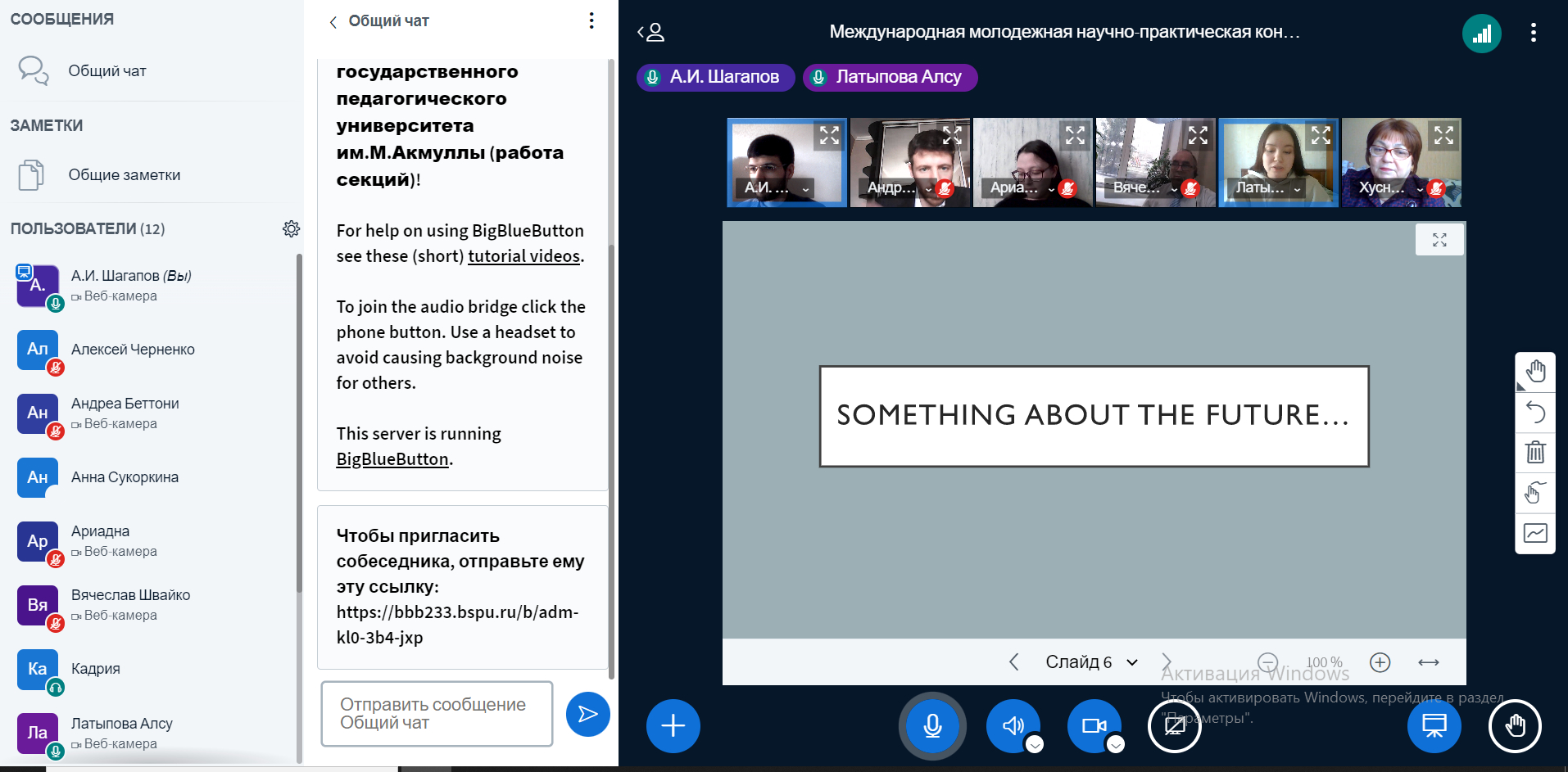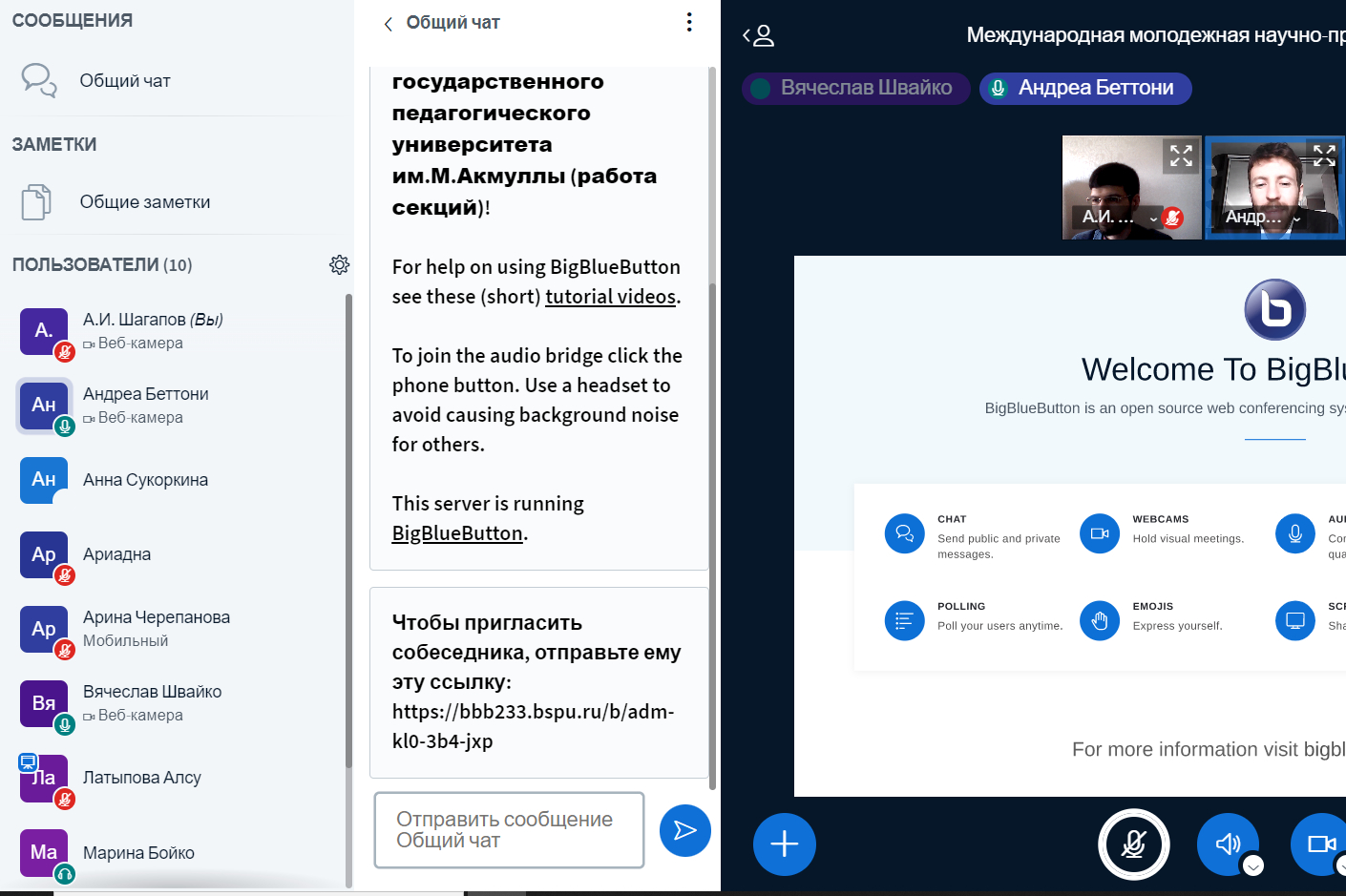 21 апреля в рамках XVIII Международной молодежной научно-практической конференции «Человек. Общество. Культура. Социализация» была организована дистанционная работа секции на английском языке “Current issues in the humanities and social sciences” («Актуальные проблемы гуманитарных и социальных наук»). В этом году за проведение секции отвечали преподаватели Института филологического образования и межкультурных коммуникаций: В.Д. Швайко, Ф.А. Хуснутдинова, А.И. Шагапов. В начале секционного заседания слово было предоставлено иностранному гостю – Андреа Беттони, выпускнику факультета политических и социальных наук университета г. Милан, который в ходе своего выступления отметил высокую значимость межкультурного диалога между высшими учебными заведениями разных стран.