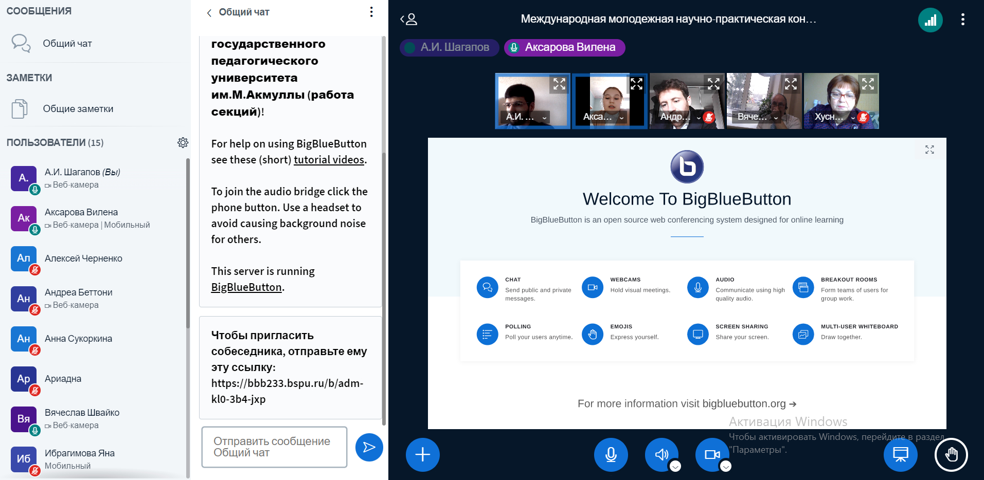Отдельным пунктом представляется целесообразным отметить работу студентов Акмуллинского университета, чьи онлайн выступления были признаны лучшими: Н. Атласова, П. Караськину, Н. Костригину, А. Латыпову, А. Устимову, А. Сукоркину, А. Черепанову, А. Черненко, Я. Ибрагимову. Также хотелось бы поблагодарить преподавателей кафедры иностранных языков, которые этих студентов подготовили: М.А. Бойко, Л.Ф. Валееву, А.Г. Коптюх, А.Р. Цыпину, Ф.А. Хуснутдинову, А.И. Шагапова.