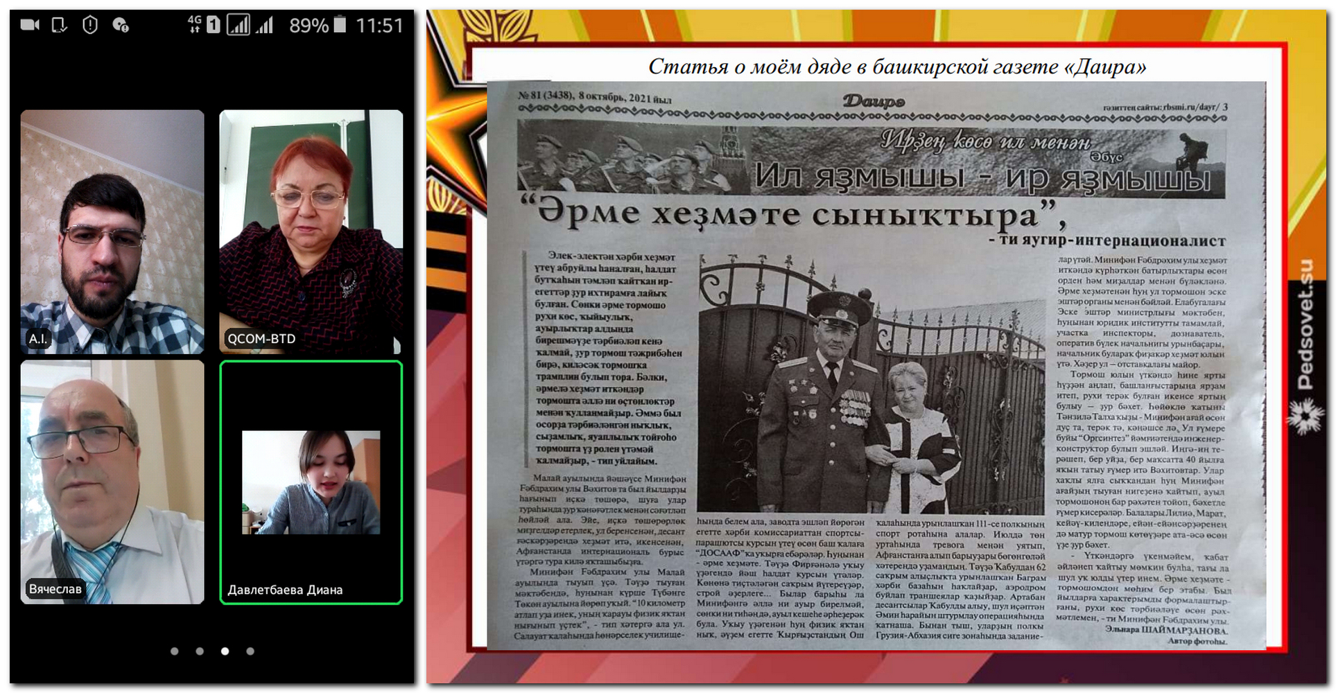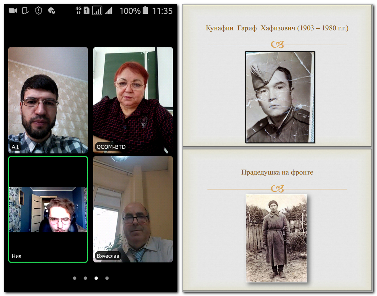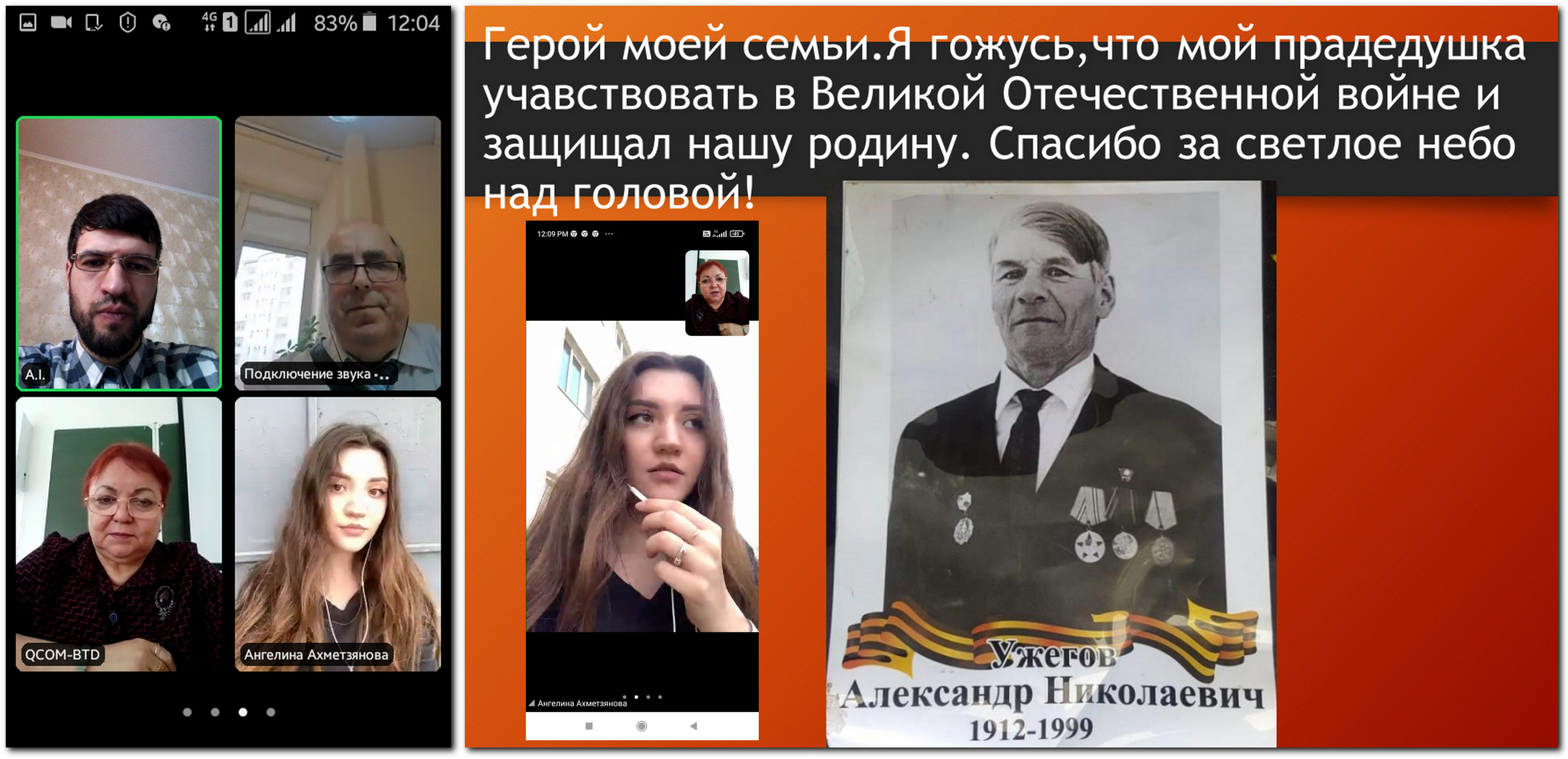 По завершении мероприятия было принято коллективное решение 9 мая встретиться всем онлайн еще раз и дистанционно поздравить ветерана Великой Отечественной войны, командира зенитного отделения, участника обороны Сталинграда Райфу Габдрауфовну Насырову, которой в феврале исполнилось 100 лет.
