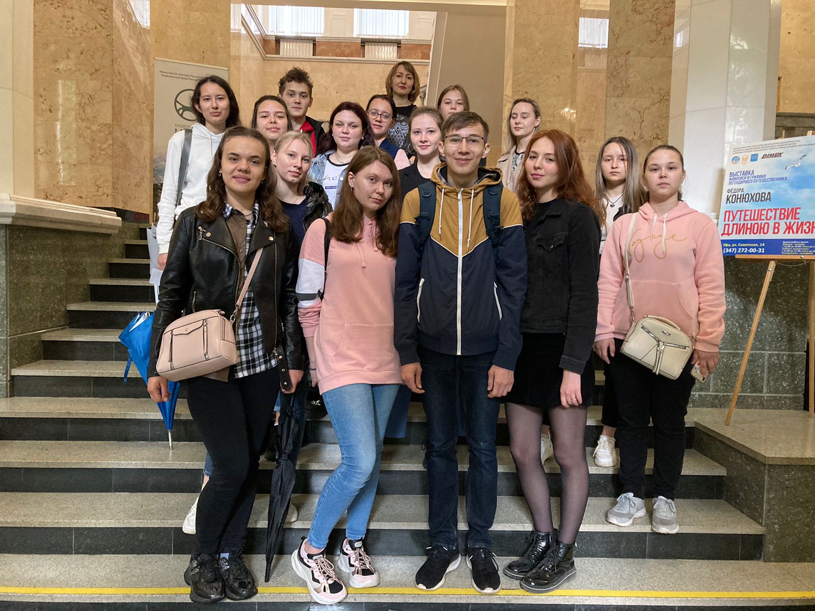 7 июня 2022 года в рамках праздничных мероприятий, посвященных Дню России, для студентов 1 курса группы ПИ_НФ-11-21 ИФМЦН БГПУ им. М. Акмуллы старший преподаватель кафедры иностранных языков А.Г. Коптюх организовала экскурсию по Национальному музею Республики Башкортостан.