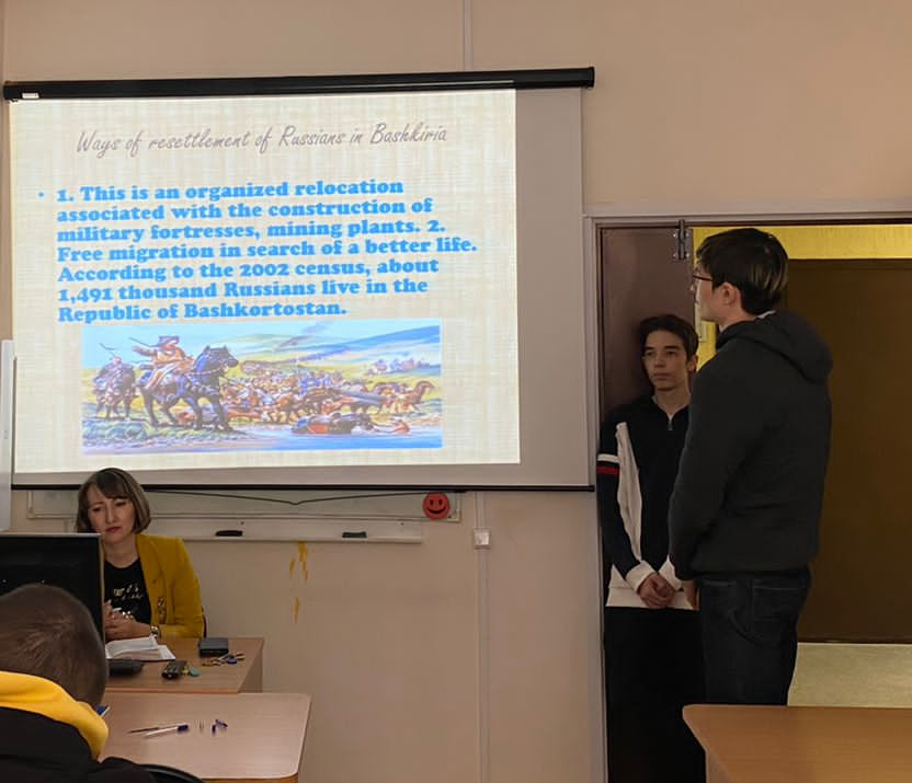 12 октября в ИФМЦН старший преподаватель А.Р. Цыпина на основе информативной презентации провела занятие с группой ПИНФ-31-20 на тему: "The Republic of Bashkortostan". Студенты ознакомились с познавательным материалом по истории своего родного края и даже подискутировали относительно некоторых вопросов. В конце тематической встречи был успешно пройден тест на проверку усвоения новых знаний.