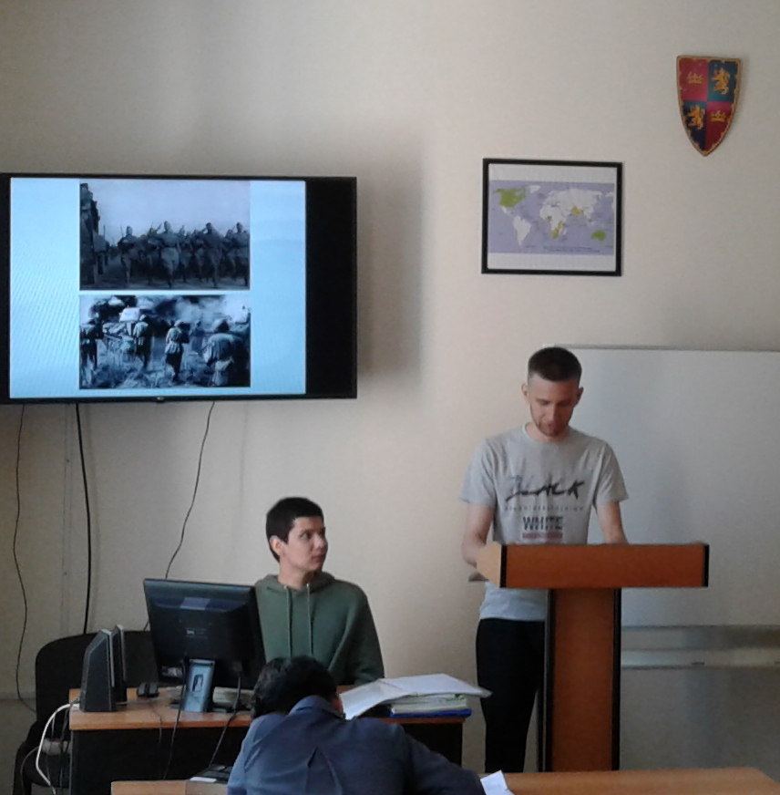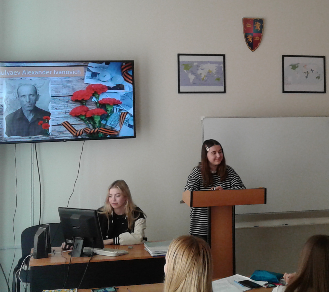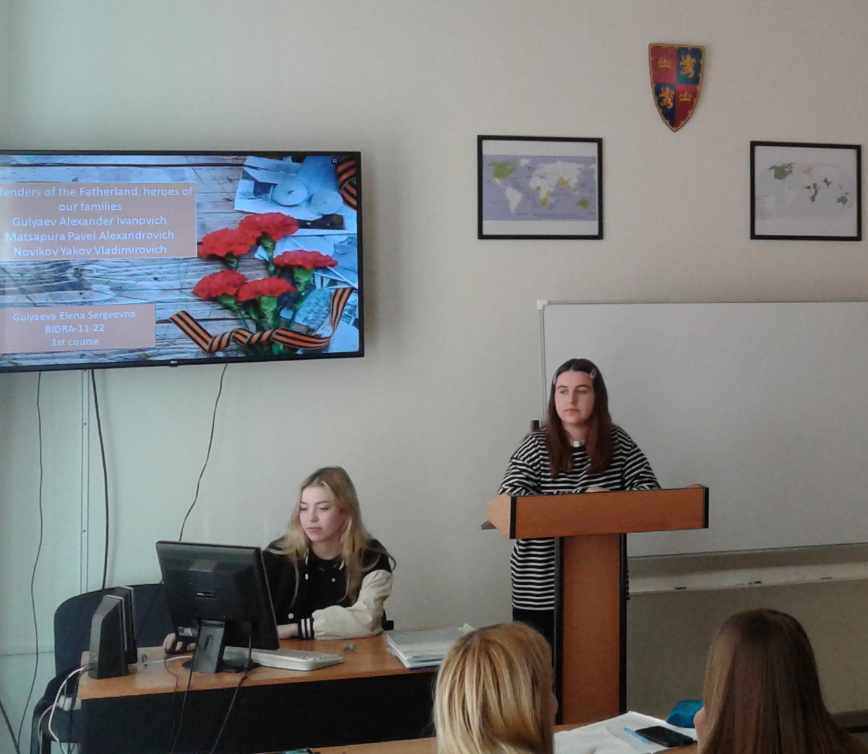 29 апреля А.И. Шагапов провел мероприятия «Защитники Отечества: герои наших семей» и «Дети Войны». Студенты групп БИДРА-11-22 и ПОИС_ОБЩ-11-22 выступили на английском языке с докладами, посвященными героической памяти их родственников.