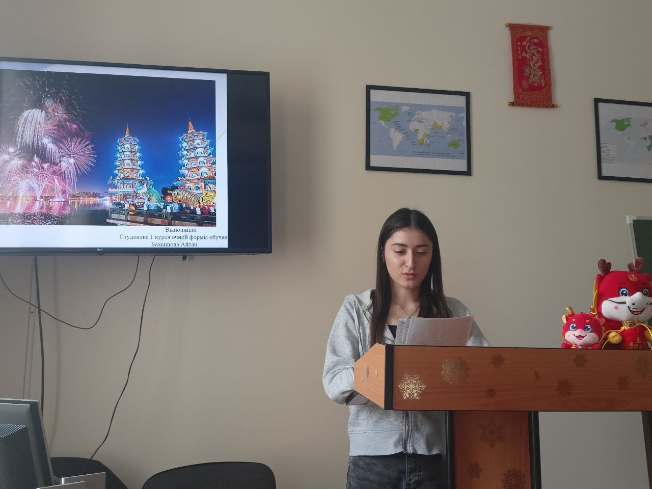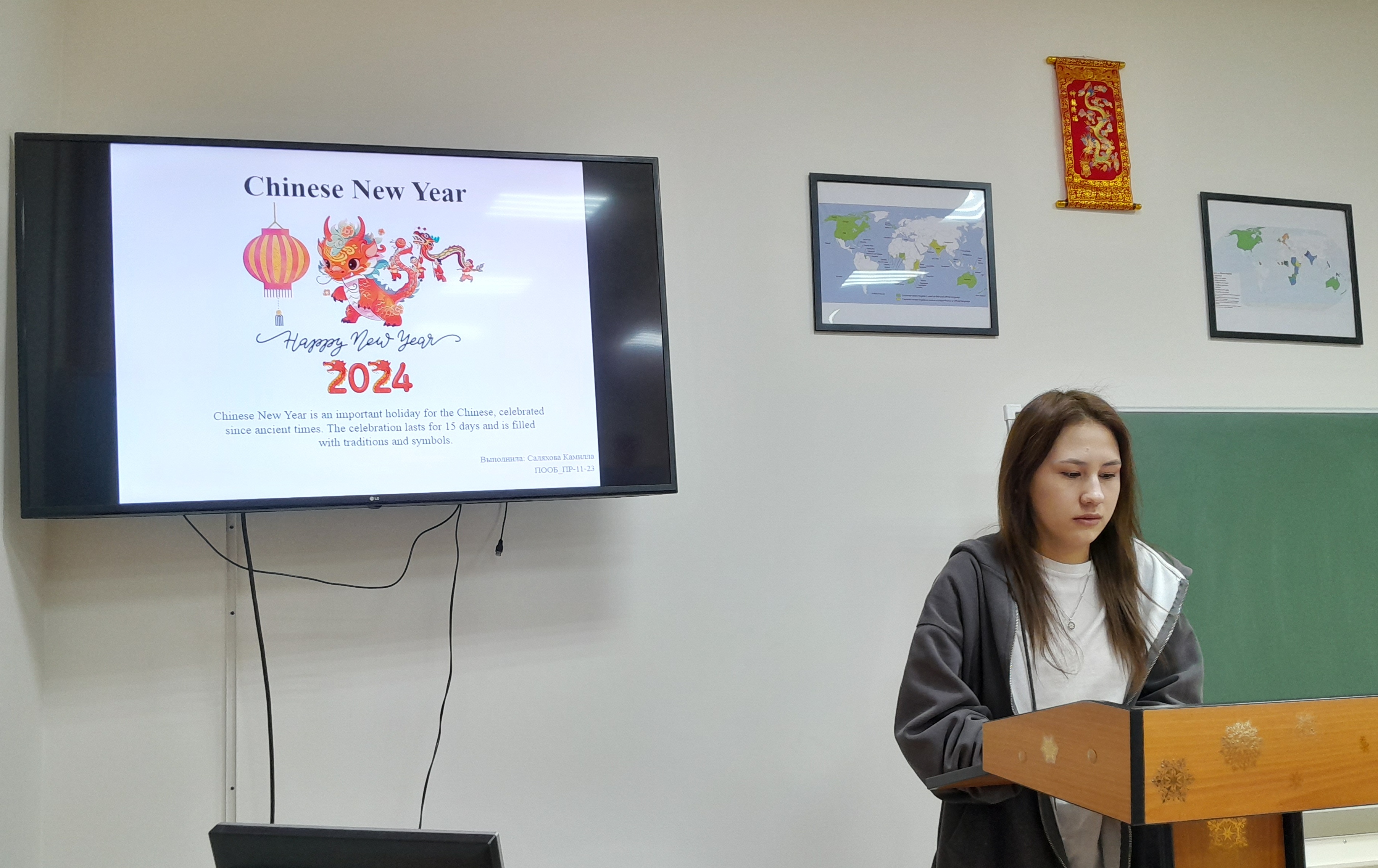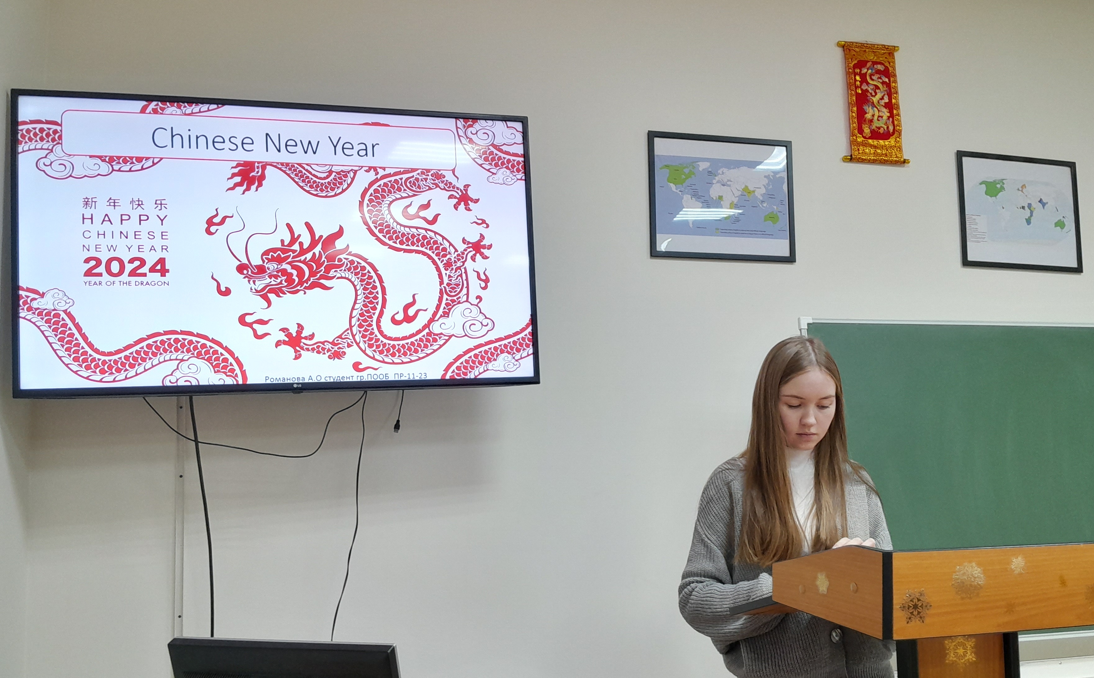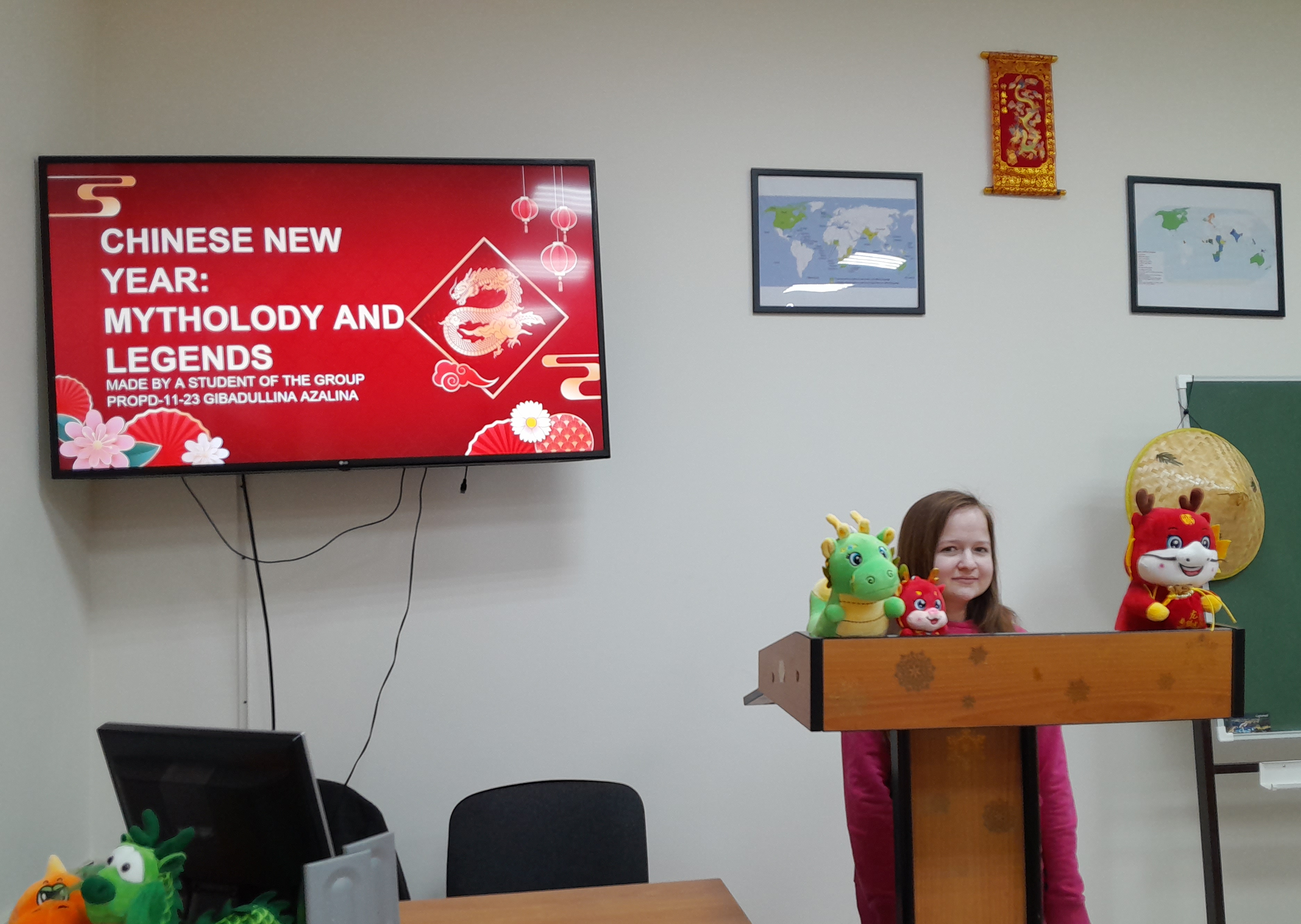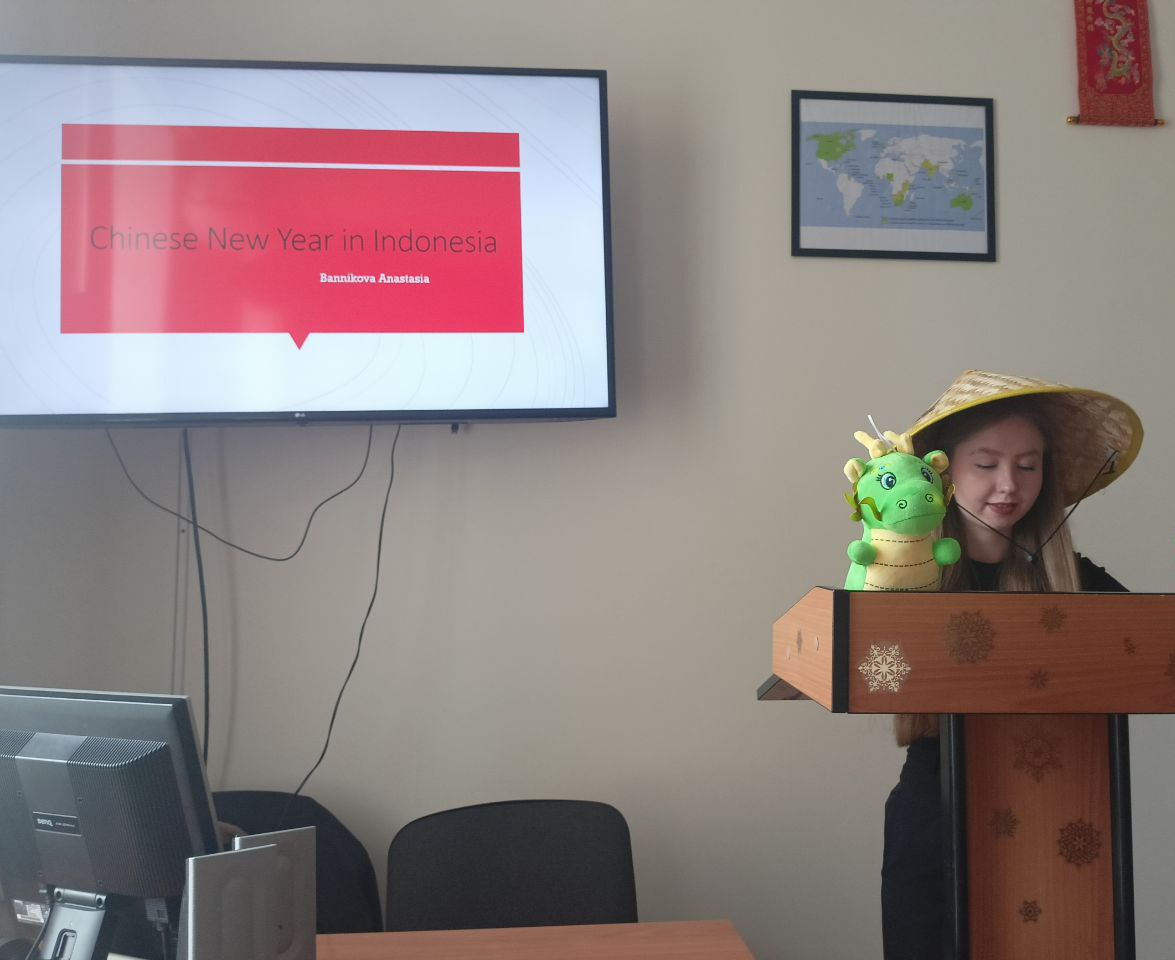 На 24-ой учебной неделе преподавателями кафедры иностранных языков было организовано и проведено мероприятие на английском языке в виде докладов студентов «Лингвофольклористическая специфика китайского Нового года: традиции, обычаи, мифологические персонажи».