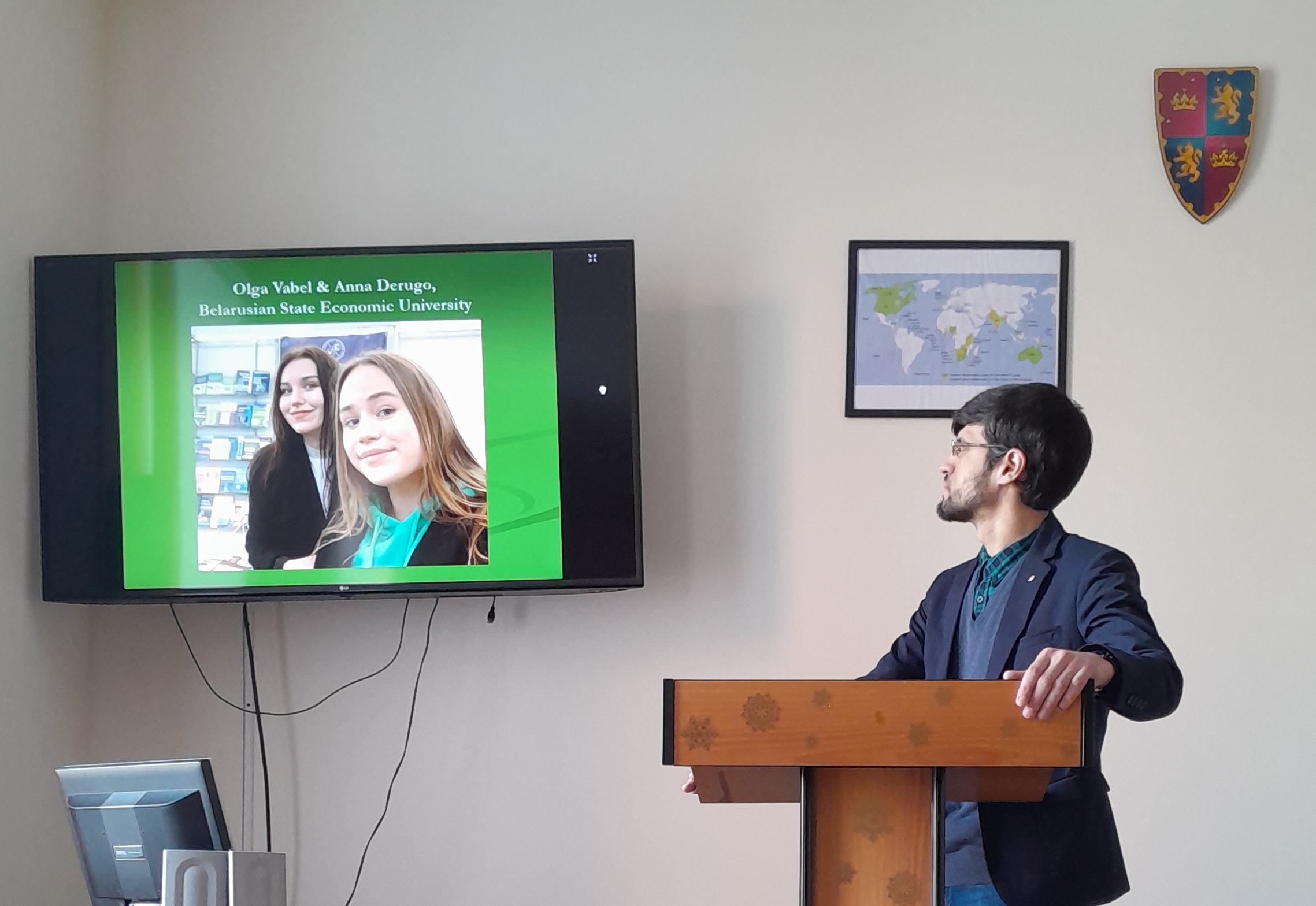 Впервые за всю историю кафедры иностранных языков в дистанционном формате с докладом выступили студенты Белорусского государственного экономического университета Ольга Вабель и Анна Деруго. Под руководством Л.И. Подгайской ими была подготовлена информативная и красочная презентация на английском языке, посвященная белорусскому празднику «Гуканне вясны» (рус. – «кликанье весны»).