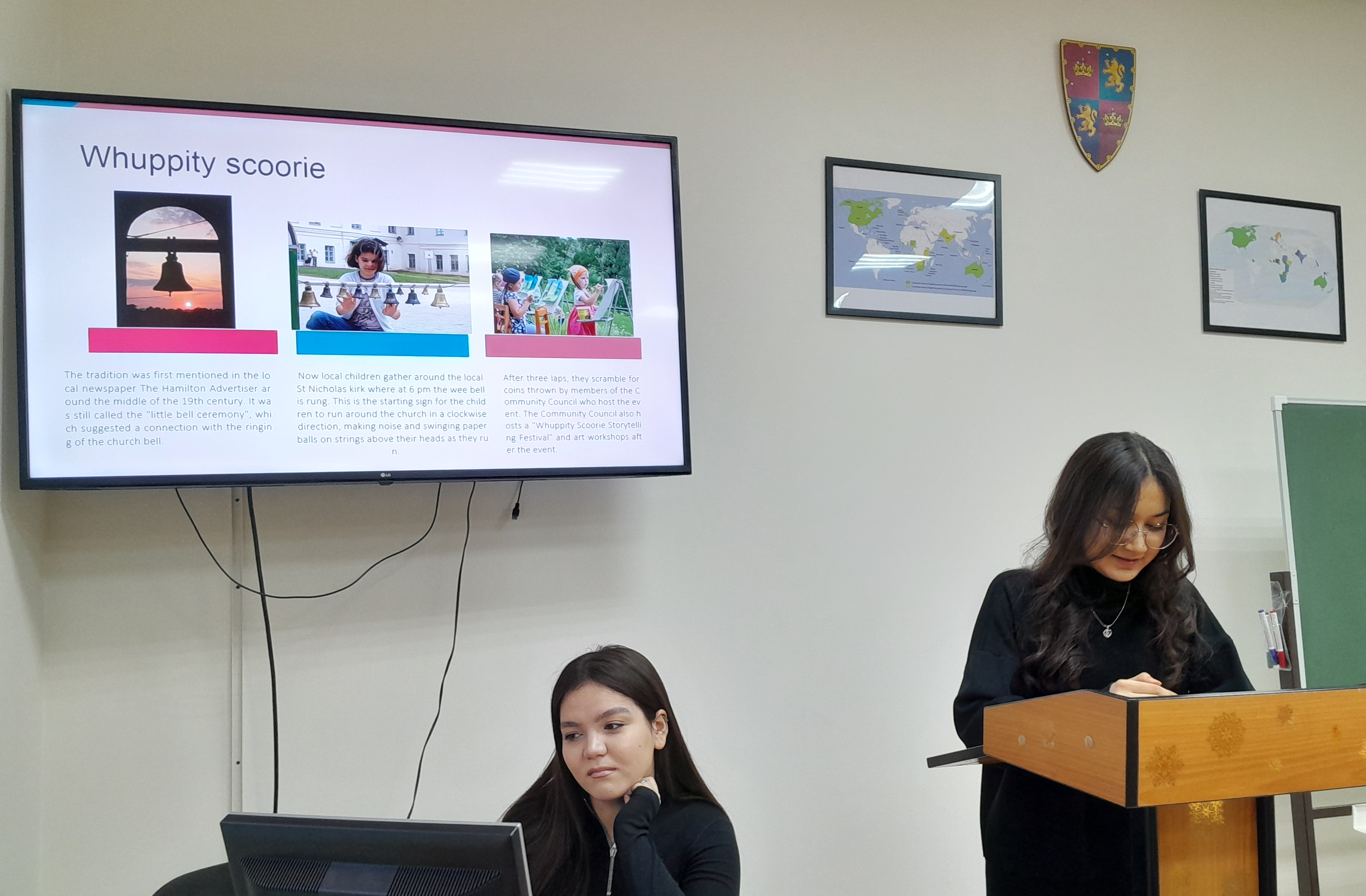 В докладах студентов с позиций междисциплинарного подхода были рассмотрены особенности праздника “Whuppity Scoorie” как феномена англо-шотландской культуры. В сравнительно-сопоставительном аспекте была подробно проанализирована специфика весенних праздников народов мира (Каргатуй, Фальяс, Масленица, Баба Марта, Марди Гра, Фастнахт, Холи, День Патрика, Навруз и др.).