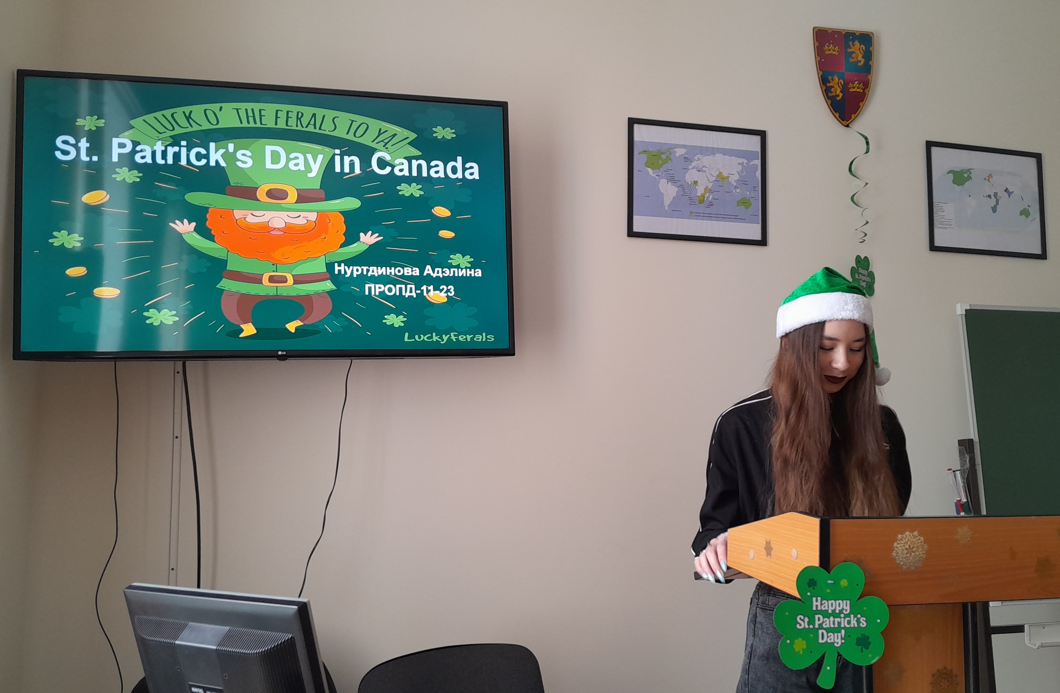 17 марта во всем мире ежегодно отмечается День святого Патрика. К этому дню было приурочено мероприятие кафедры иностранных языков в виде докладов студентов «День Патрика в разных странах: история, обычаи и традиции», которое было проведено на 29-ой учебной неделе.