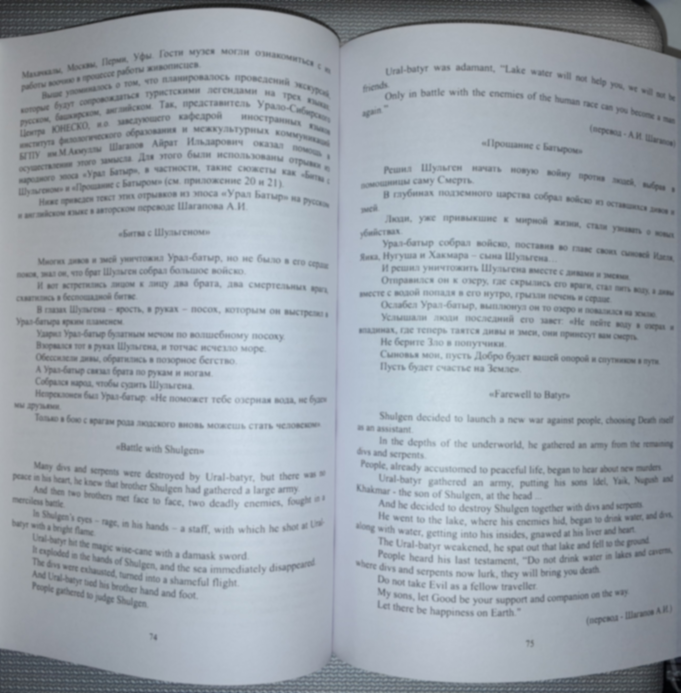 В типографии города Воронеж была отпечатана монографическая работа профессора Акмуллинского университета Ю.Р. Лутфуллина «Туристские легенды в рамках инвестиционной привлекательности региона», в которой представлены переводы фрагментов эпоса Урал-батыр, сделанные А.И. Шагаповым. Монография предназначена для преподавателей и студентов высших учебных заведений, работников администраций муниципалитетов, а также для всех тех, кто интересуется вопросами развития внутреннего туризма.