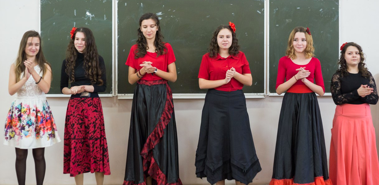 В данном мероприятии прозвучали песни известных испаноязычных авторов. Два номера были построены на репертуаре знаменитого испанского певца Альваро Солер. В программу были включены два вальса, танцы Fiestaloca в стиле зумбы, Esaola в стиле самбы, испанский национальный танец фламенко. Аудитория встретила бурными овациями дефиле испанского веера, которое представили ученицы 2 класса в сопровождении старшеклассниц. На протяжении концерта ведущие проводили викторину на знание культуры Испании и испаноязычных стран, по результатам которой студенты получили памятные призы.