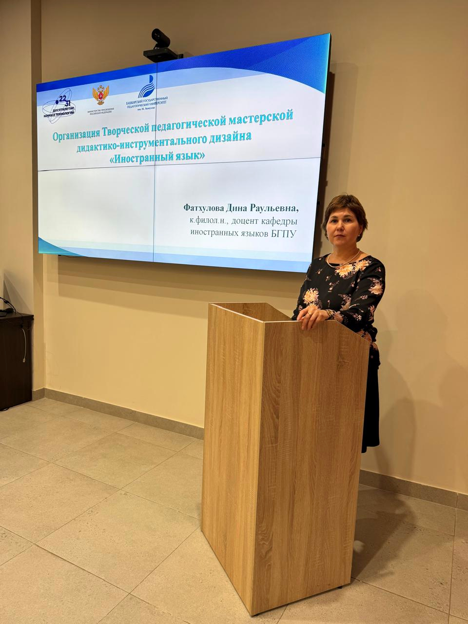 Доцент кафедры Д.Р. Фатхулова выступила с докладом на тему «Организация Творческой педагогической мастерской дидактико-инструментального дизайна “Иностранный язык”» на секции «Проектирование программно-методического сопровождения цифровых инноваций в школе на основе визуальных дидактических регулятивов». Описанная в статье технология была успешно апробирована при выполнении работ на базе федеральной инновационной площадки Акмуллинского университета и ежегодно результативно применяется в рамках технологической практики по информационно-коммуникативным компетенциям и цифровой грамотности.
