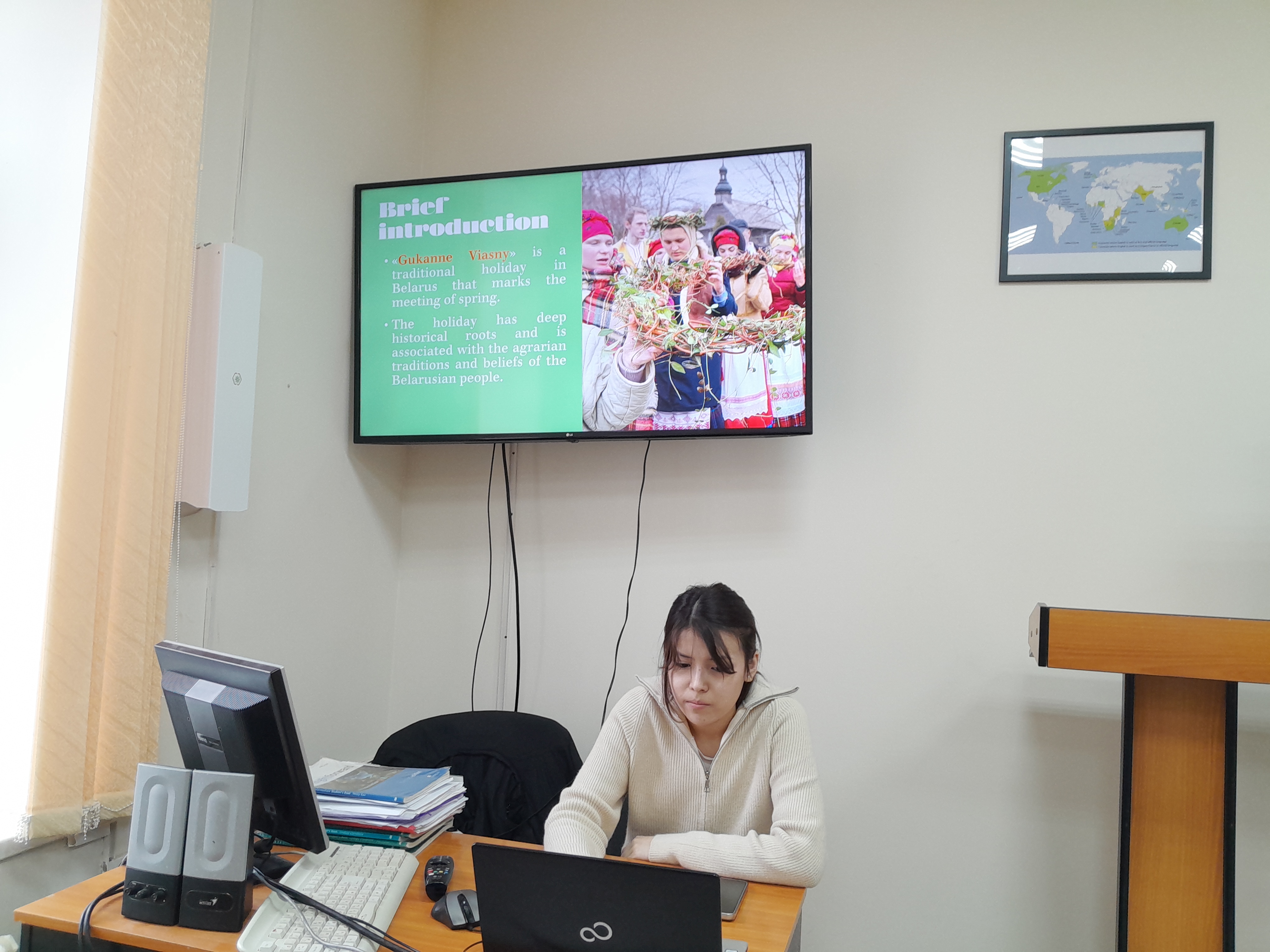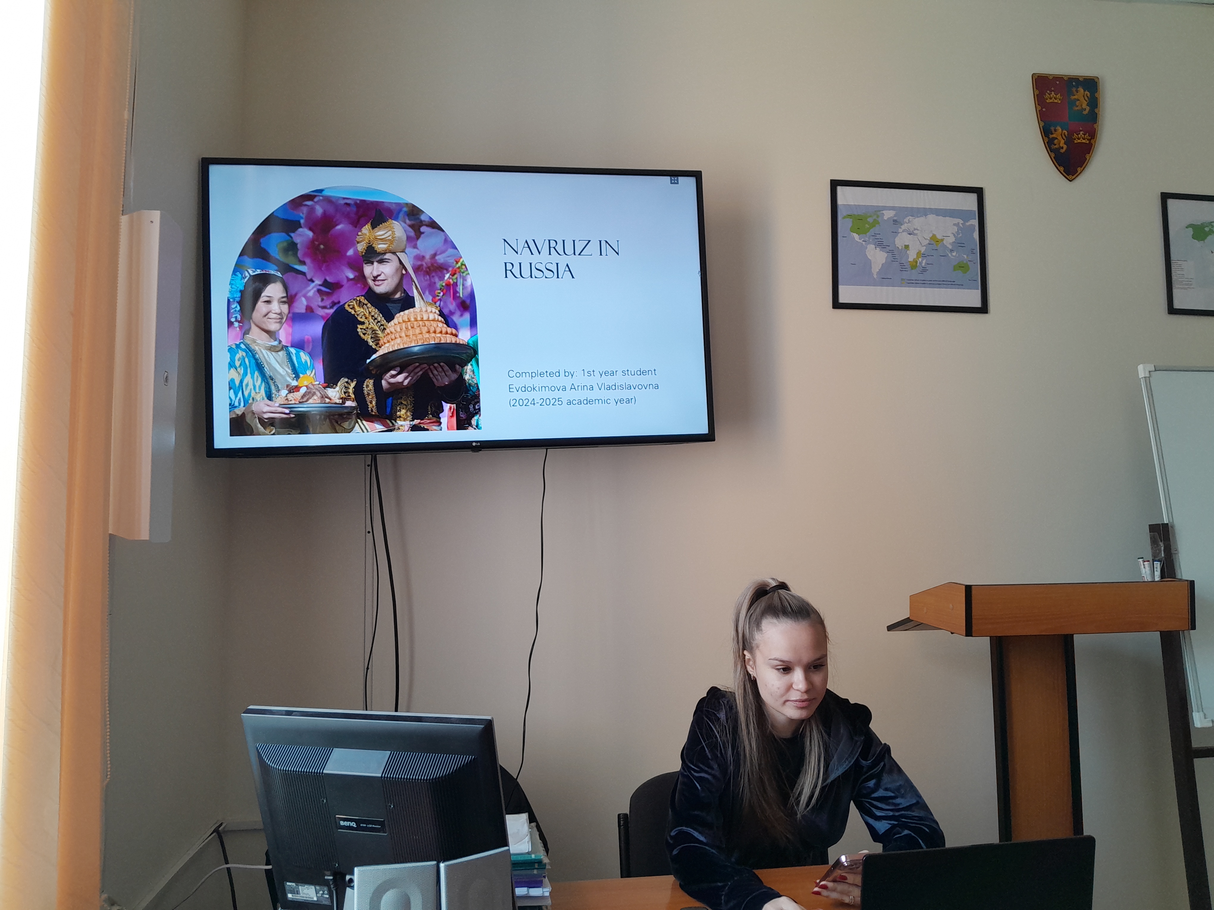 В мероприятии кафедры иностранных языков в дистанционном формате приняли участие и студенты Республики Казахстан. Например, Жолболдықызы Улнар (рук.: Серик Кульпеисов, Костанайский социально-технический университет им. академика З. Алдамжар) и Александра Сентябова (рук.: Ольга Васильева, Костанайский филиал ЧелГУ) подготовили информативные и красочные презентации, раскрывающие особенности празднования Навруза в Средней Азии.