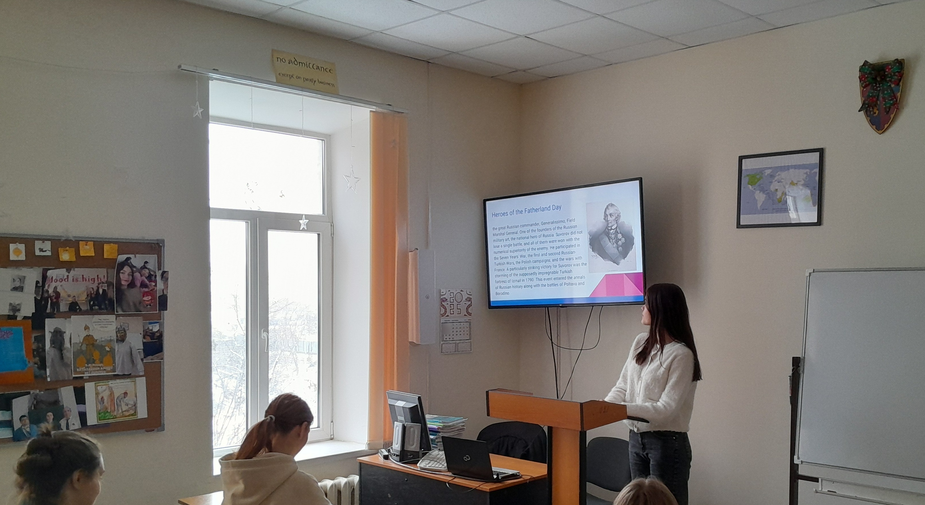 9 декабря 2025 года преподаватели кафедры иностранных языков провели мероприятие, приученное ко Дню Героев Отечества. Студенты подготовили информативные доклады и выступили с красочными презентациями на английском языке, в которых они отразили некоторые факты жизненного пути Героев Советского Союза (Гастелло, Грибанова и др.), Георгиевских кавалеров (например, Суворова, Кутузова, Брусилова) и известных исторических личностей, внёсших значительный вклад в дело становления России как государства.