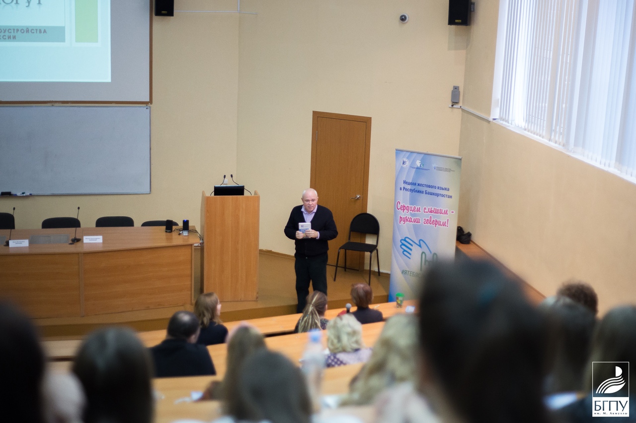 6 декабря 2019 года в Башкирском государственном педагогическом университете состоялась открытая лекция о специфике русского жестового языка, включенного в Конституцию России в качестве государственного. Мероприятие проведено Региональным отделением Общероссийской общественной организации инвалидов «Всероссийское общество глухих» по РБ в рамках цикла инклюзивных мероприятий «Неделя русского жестового языка».