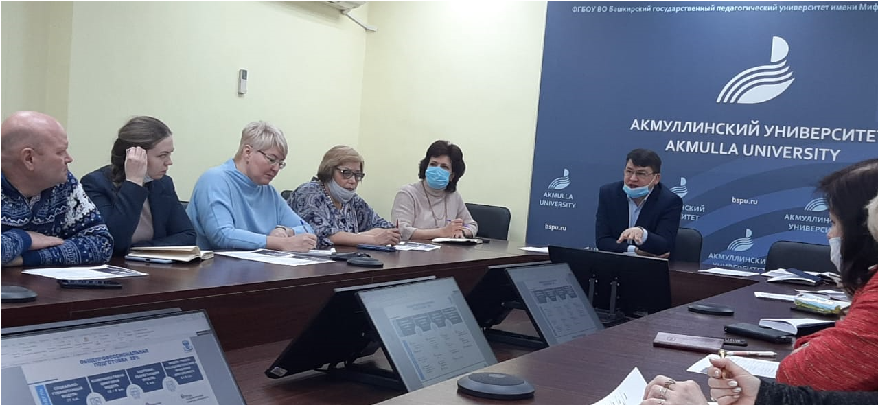 В БГПУ им. М.Акмуллы с 12 по 14 января 2022 года состоялось обсуждение разработки учебных планов на 2022 год набора с учётом внедрения проекта «Ядро высшего педагогического образования». Организаторами выступили проректор по учебно-воспитательной работе В.А. Шаяхметов, директор учебно-методического департамента А.Р. Рахматуллина, руководитель центра менеджмента Г.Р. Гильманова, ведущий специалист УМД З.Р. Сайфутдинова.