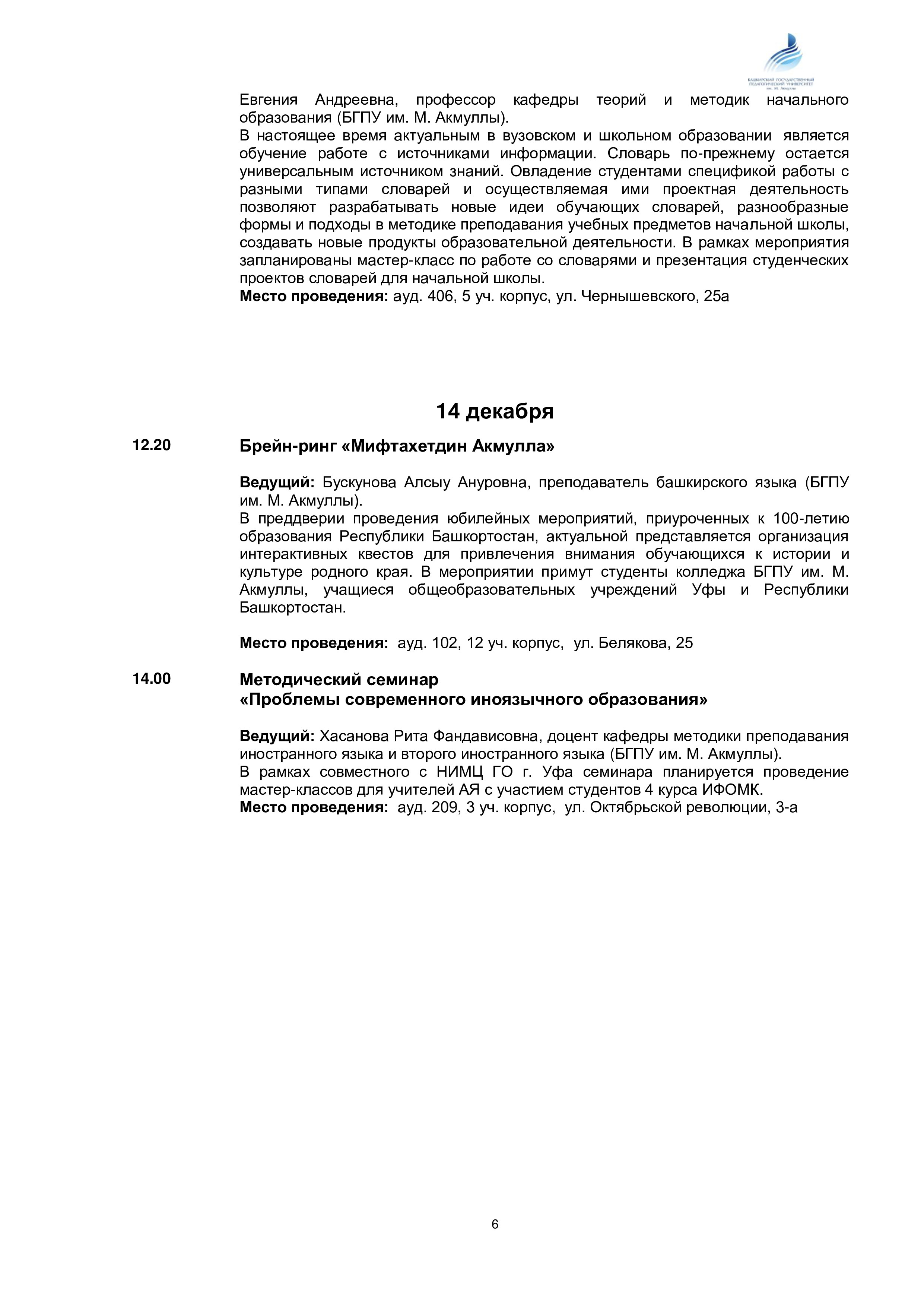 Программа Мероприятий "Международные дни М. АКмуллы"