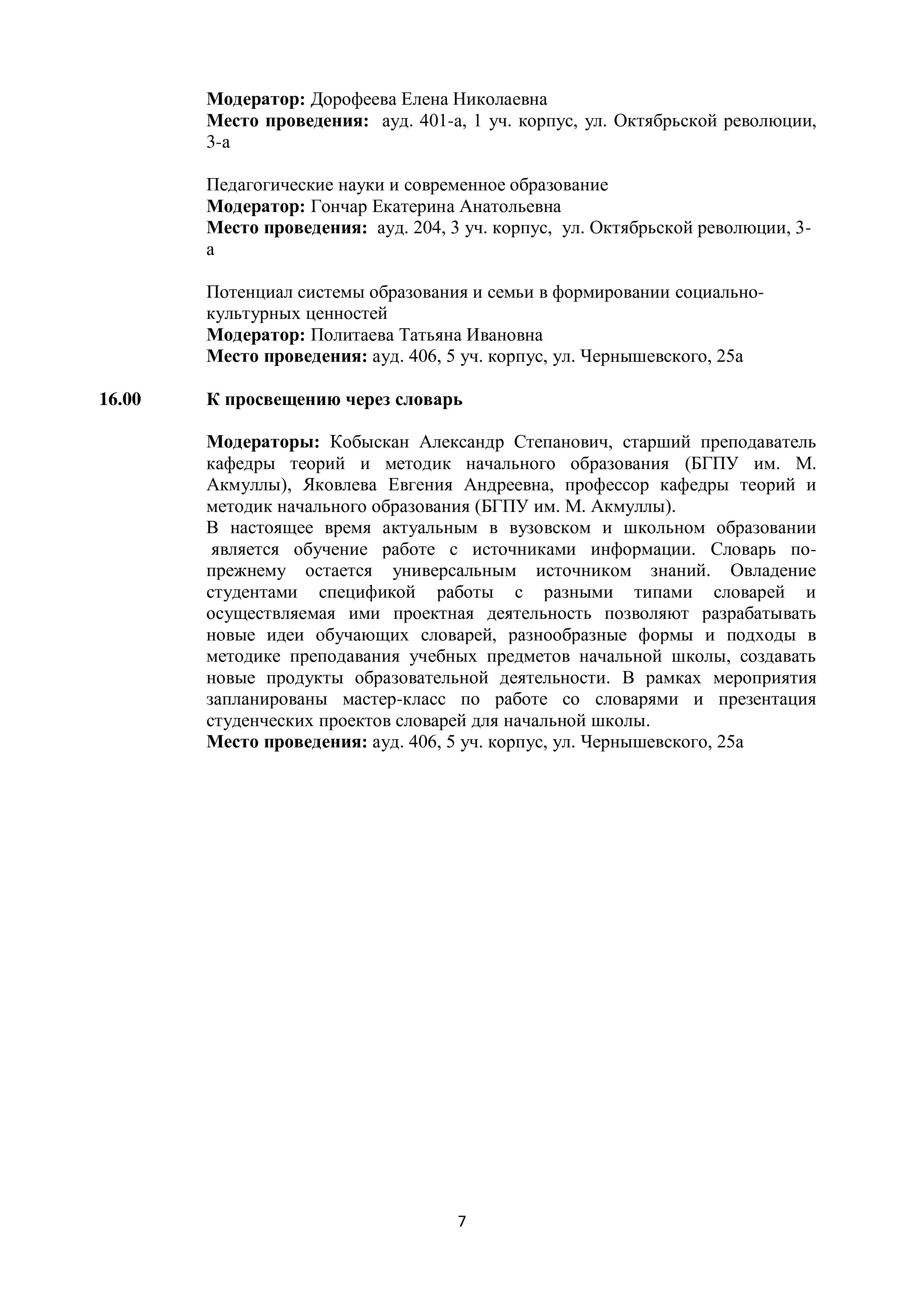 Пленарное заседание конференции пройдет в 409 ауд. 3 учебного корпуса (ул. Октябрьской революции, 3а) с 10.00 до 13.00.
