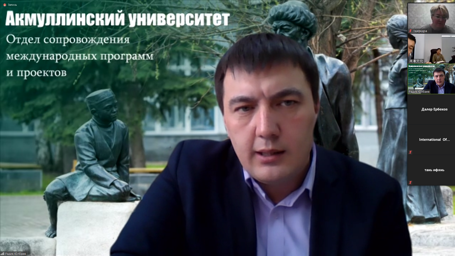 24 марта состоялась встреча сотрудников Акмуллинского университета с представителями компании ООО «Hebei Linxi Culture Communication Co., Ltd.» (Китай) по вопросам сотрудничества в области обучения студентов и организации программ академической мобильности в рамках приемной кампании 2021-2022 года.