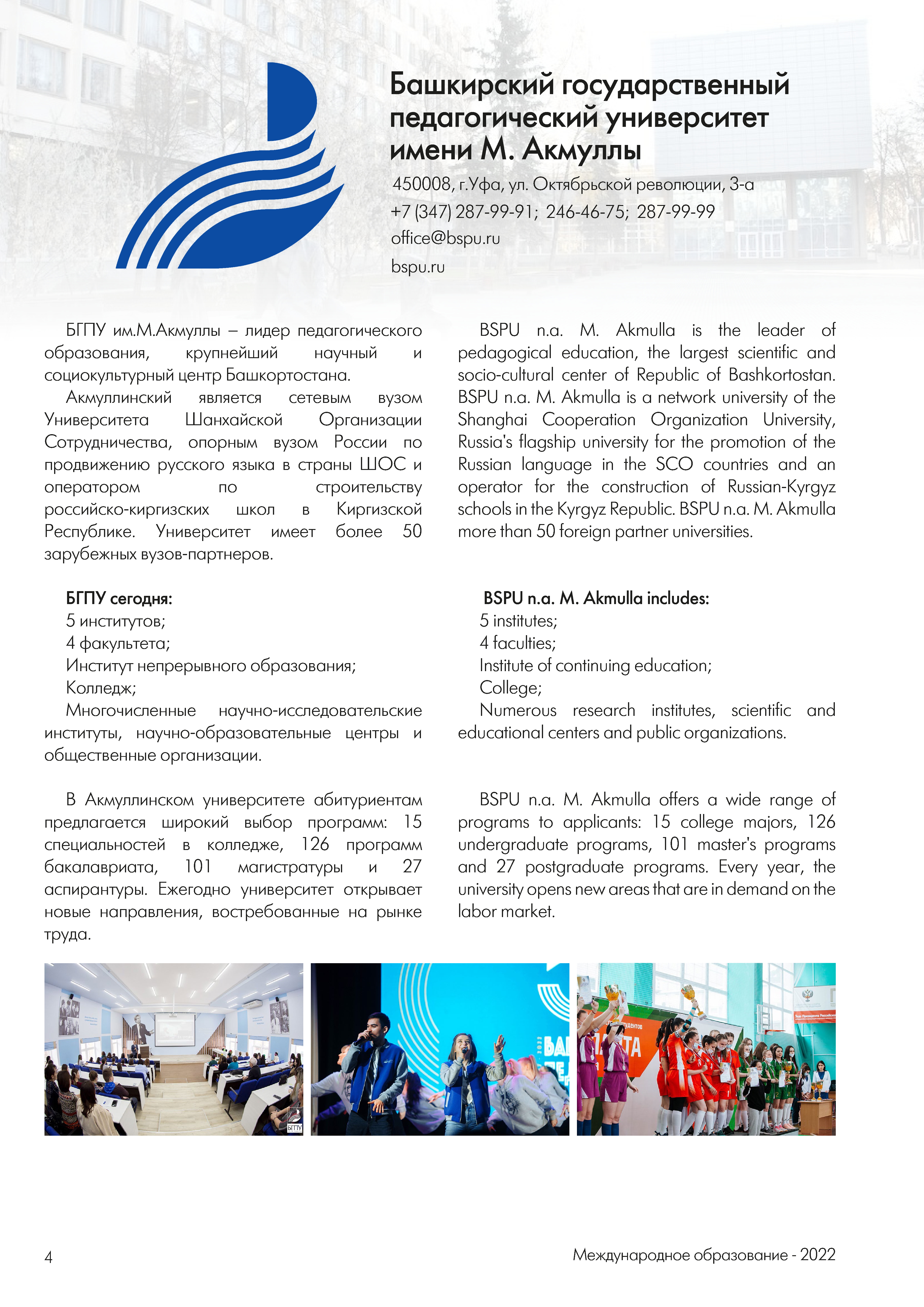 БГПУ им. М. Акмуллы представлен в каталоге «Международное образование-2022»
