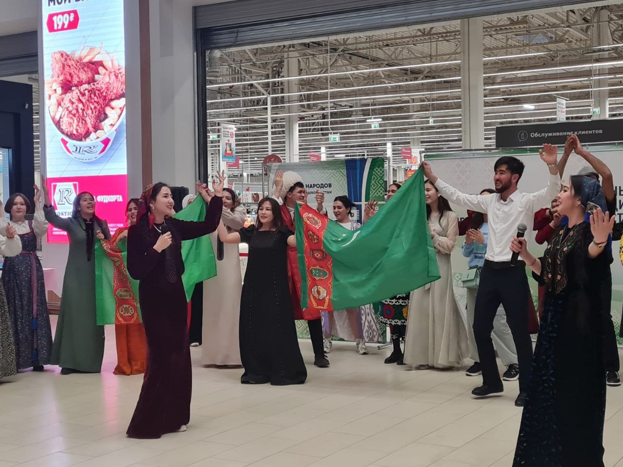 В честь праздника Министерство культуры и Дом дружбы народов Башкортостана организовали народное гуляние в одном из крупных торговых центров Уфы. Здесь собрались около 100 участников, которые изучают и бережно хранят культурное наследие своих предков от национального костюма до музыкального инструмента, песни или танца. Каждый посетитель этого уникального события получил возможность познакомиться с более чем 20 культурами  народов России и представителей ближнего и дальнего зарубежья, а также примерить на себя элемент любого национального костюма, которые были представлены на выставке для красочного памятного фото.