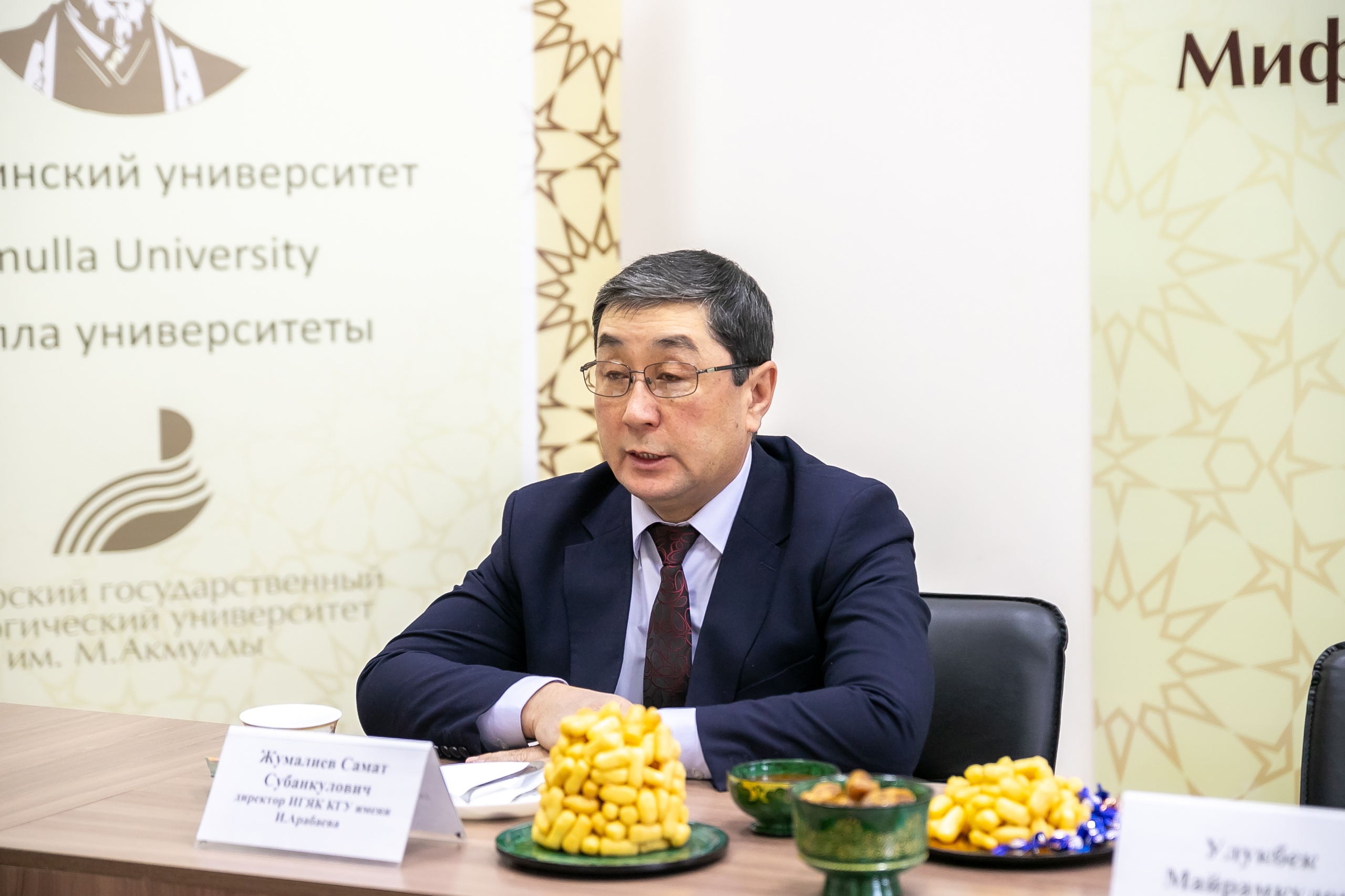 «Институт государственного языка и культуры КГУ им. И. Арабаева ведет подготовку филологов по разным направлениям и активно сотрудничает с вузами Казахстана, Китая и других стран. Руководство университета надеется на долгосрочную и плодотворную совместную работу с Акмуллинским университетом», – подчеркнул Самат Жумалиев.