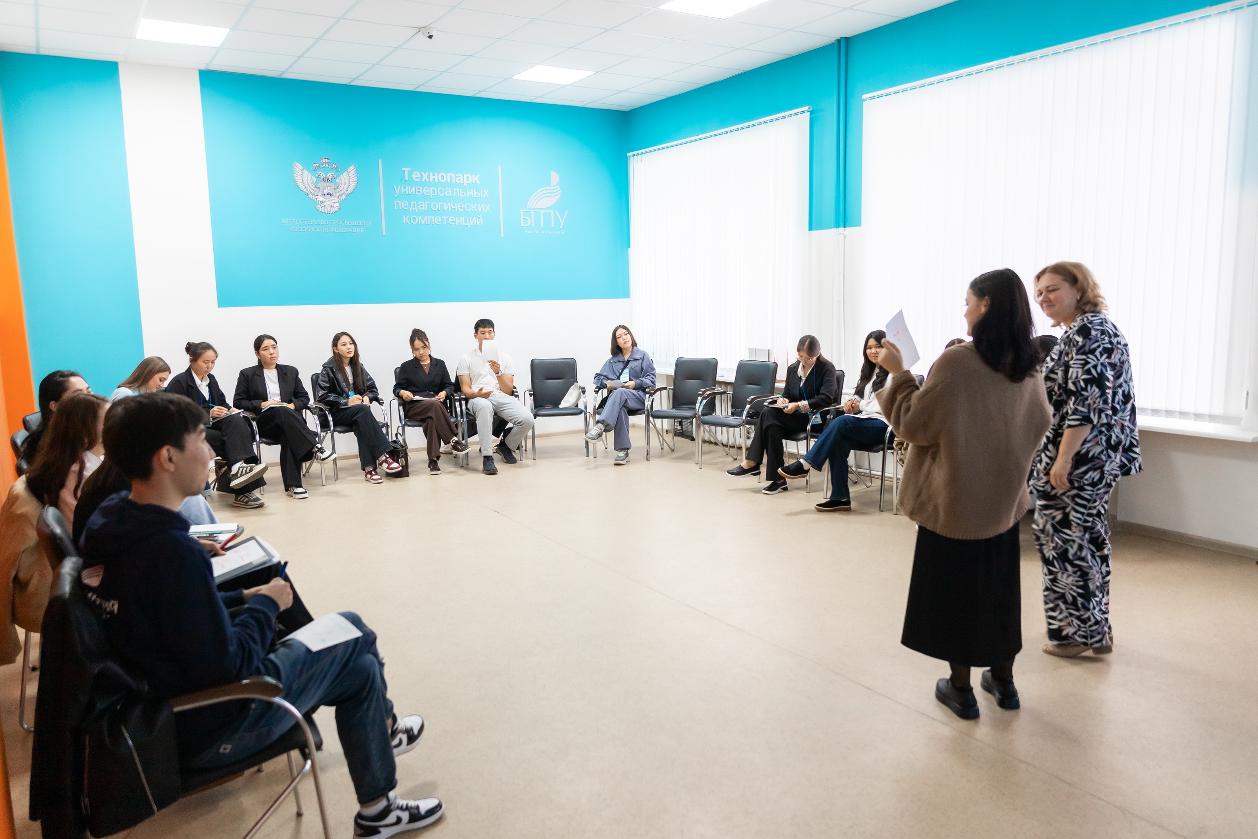 Руководитель Центра примирительных технологий и общественного взаимодействия Максим Беляев провел для будущих студентов мастер-классы «Медиативные  технологии  в  общении  со  сверстниками» и «Я и окружающие». Секретами эффективного общения на коммуникативном тренинге с ребятами поделилась Юлия Фомина, доцент кафедры русского языка, теоретической и прикладной лингвистики, сотрудник Международного центра продвижения русского языка и литературы им. М. Карима. Мастер-класс  «Моя  жизнь  как  бизнес  план» провела Гульнара Фаттахова, заместитель декана по научной работе и общим вопросам факультета психологии, руководитель научно-образовательной лаборатории «Психология образования».