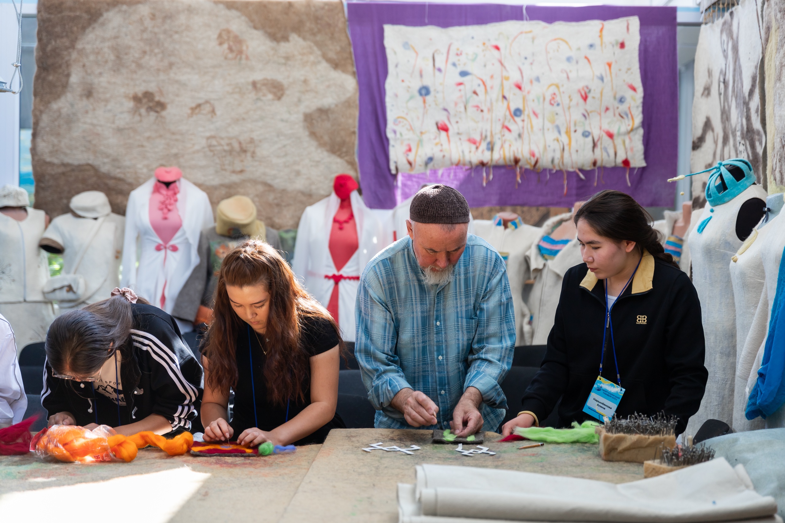 Также ребята посетили мастер-класс в Центре художественного войлока БГПУ им. М. Акмуллы. Его руководитель Талгат Масалимов познакомил детей с декоративными панно, костюмами и объемными арт-объектами, представленными в Центре. Участники летней школы смогли сами сделать небольшую поделку из войлока. Все изделия, созданные в рамках мастер-класса, ребята забрали с собой на память.