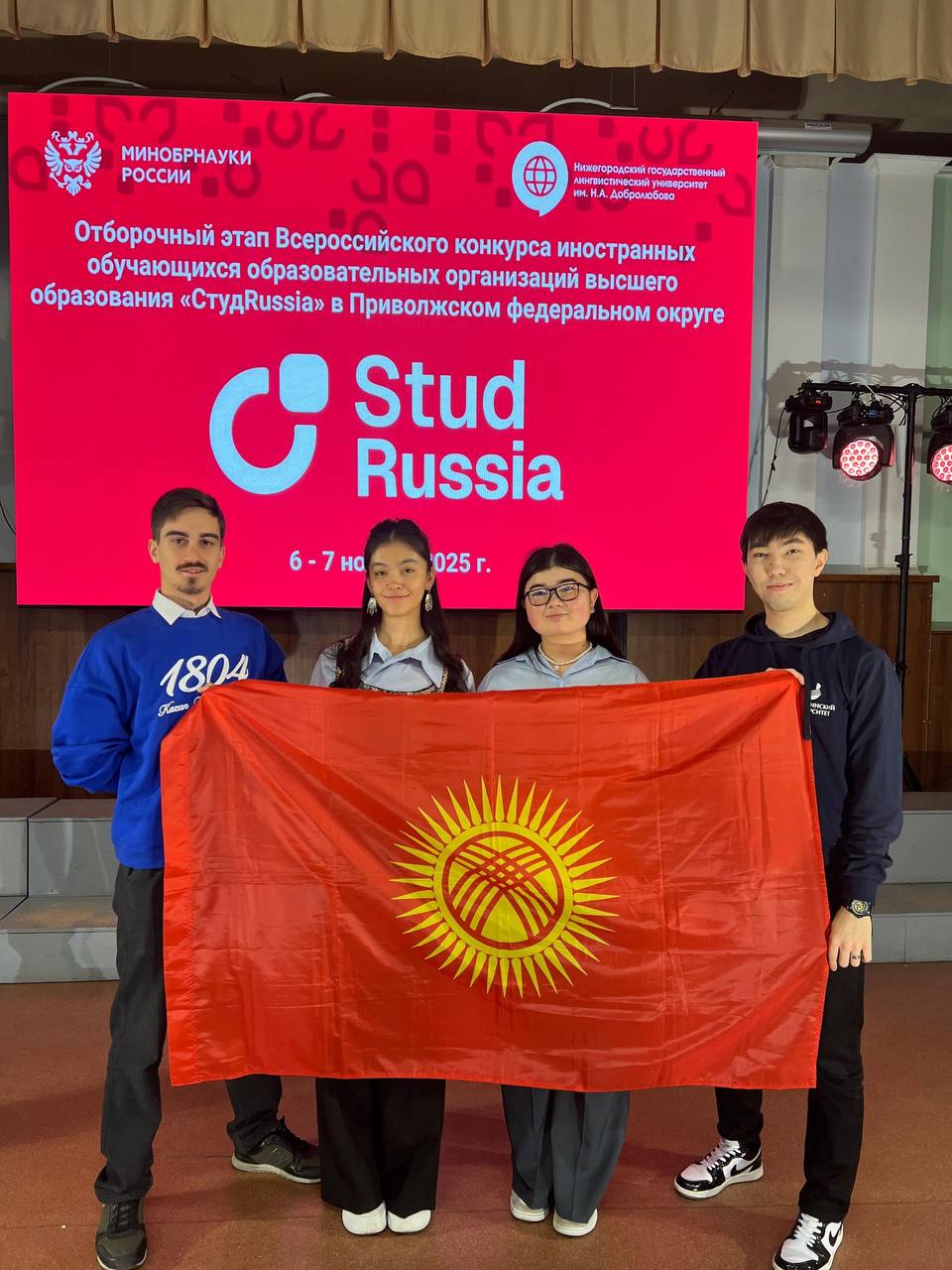 С 5 по 7 ноября в Нижнем Новгороде, на базе Нижегородского государственного лингвистического университета им. Н.А. Добролюбова проходил окружной этап Всероссийского конкурса иностранных обучающихся «СтудRussia». Конкурс проводится для поддержки иностранных обучающихся России, имеющих особые достижения в области образования и науки, молодежной политики, студенческого лидерства, общественной деятельности, добровольчества, творчества и спорта. Он дает ребятам возможность познакомиться с активистами со всей страны, заявить о себе и получить шанс выиграть отличные призы.