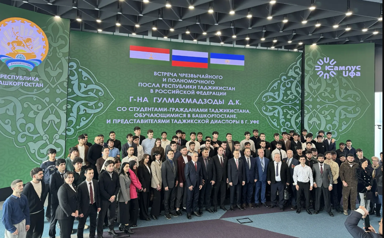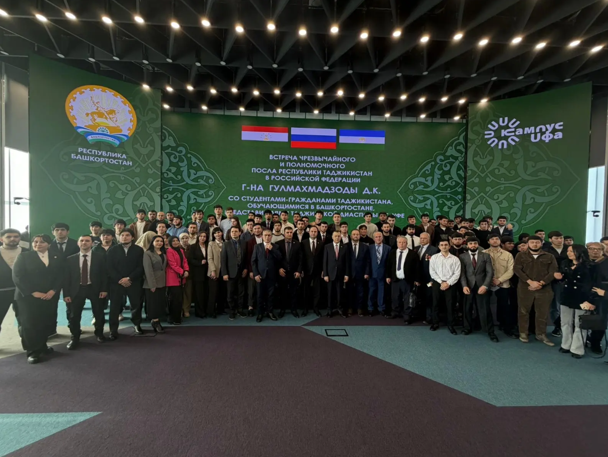 24 февраля в Уфе, на площадке Межвузовского студенческого кампуса Евразийского НОЦ состоялась встреча Чрезвычайного и Полномочного Посла Республики Таджикистан в Российской Федерации Гулмахмадзоды Давлатшо Курбоналиевича со студентами – гражданами Таджикистана, обучающимися в вузах Башкортостана, а также с представителями таджикской диаспоры в Уфе.