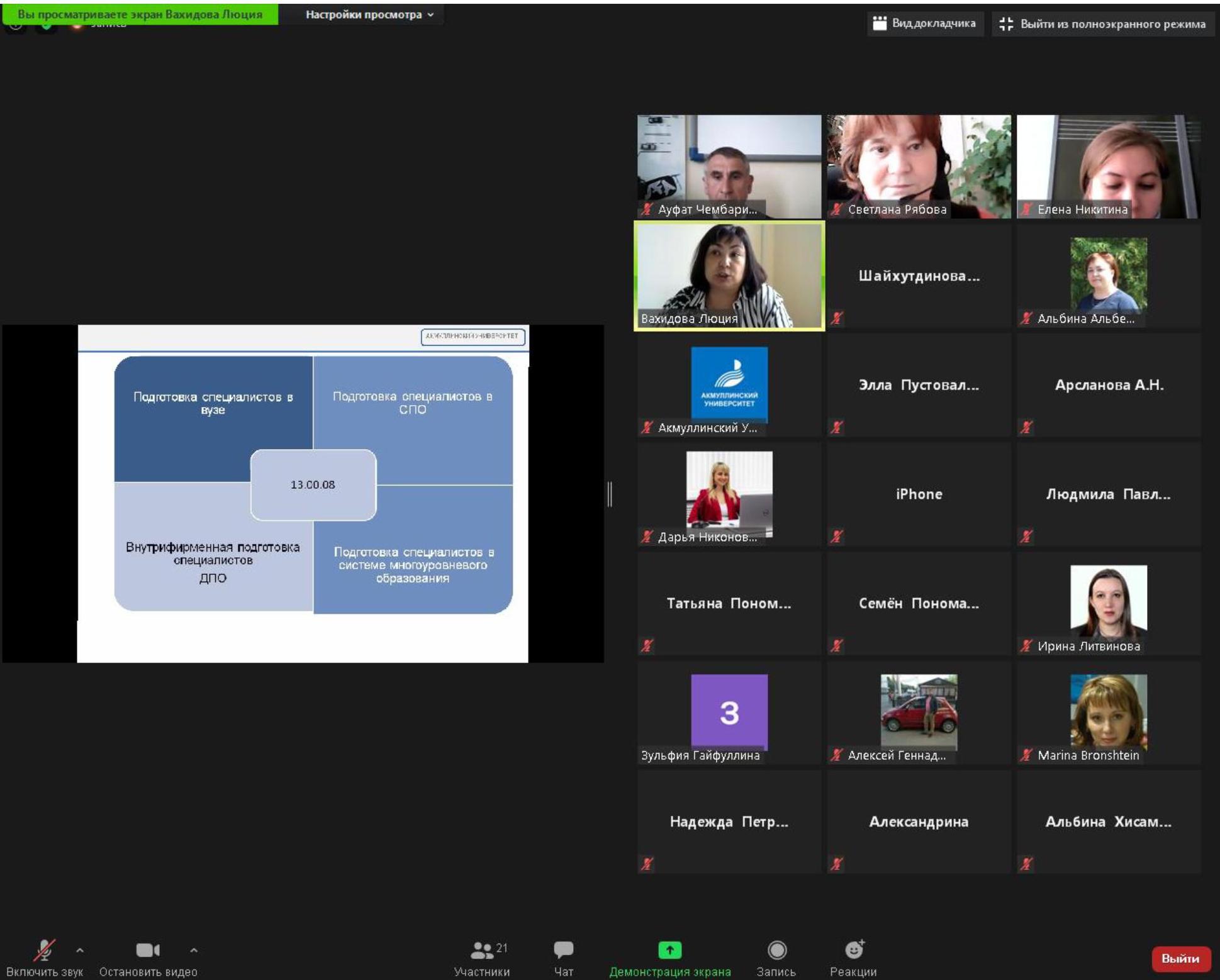 В презентации приняли участие 24 преподавателя из колледжей Республики Башкортостан. Для них были представлены две образовательные программы подготовки научных и научно-педагогических кадров в области педагогических наук: Общая педагогика, история педагогики и образования; Теория и методика профессионального образования. Участники презентации узнали о правилах приема в аспирантуру в 2021 году, о ведущих научных педагогических школах нашего университета и  актуальных направлениях исследований, таких, как цифровая педагогика, компетентностный подход в профессиональном образовании, профессиональная мобильность педагога, технологии инклюзивного образования и т.п.