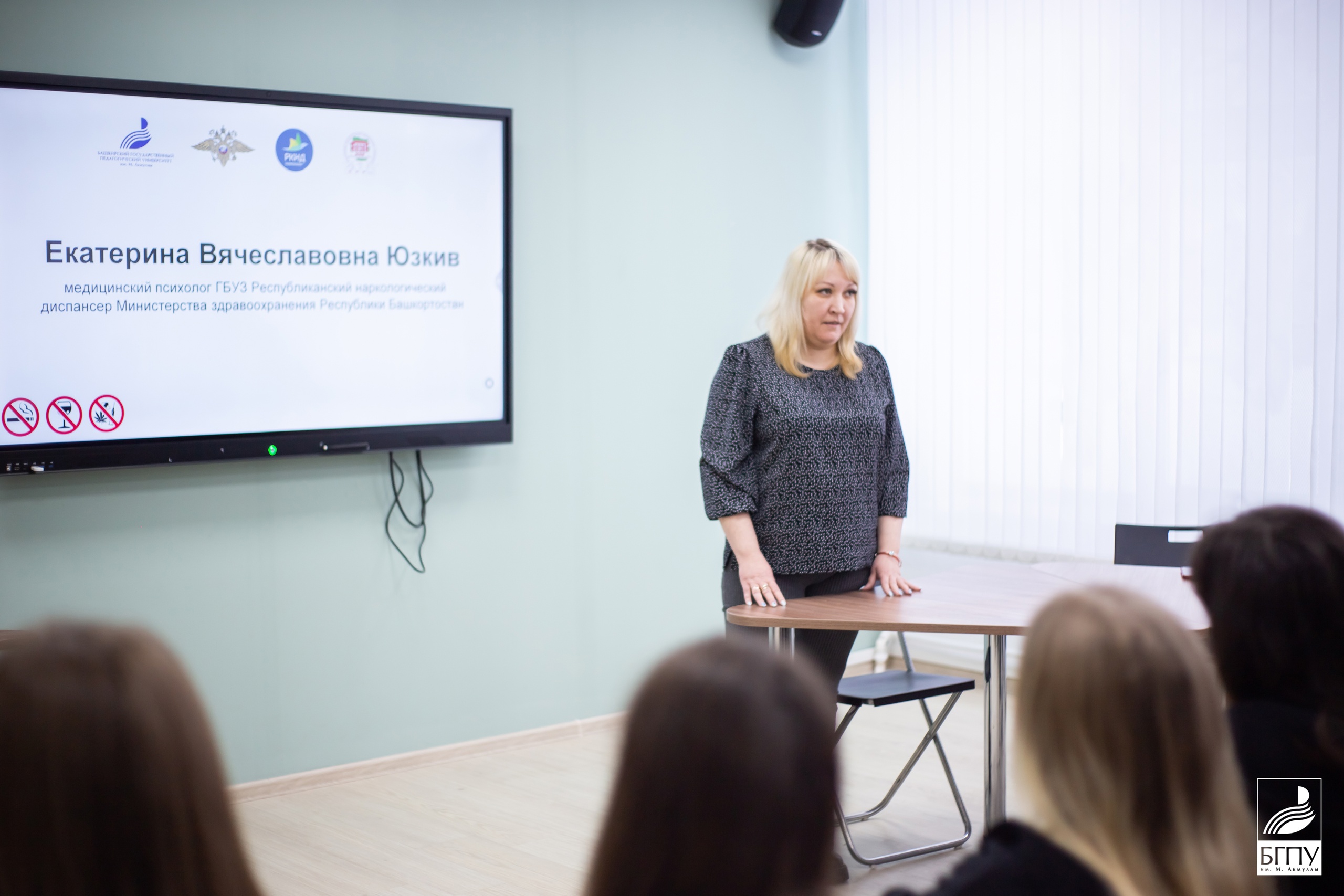В ходе встречи велась профилактическая беседа про наркоманию, алкоголь и табакокурение. Представитель МВД по РБ Регина Киреева в доступной форме с яркими примерами из профессиональной практики рассказала студентам о зависимости от наркотических веществ и о его последствиях во всех сферах жизни. Вниманию участников был представлен видеоролик «Белая зебра», после которого обсуждались причины и исходы употребления наркотиков.