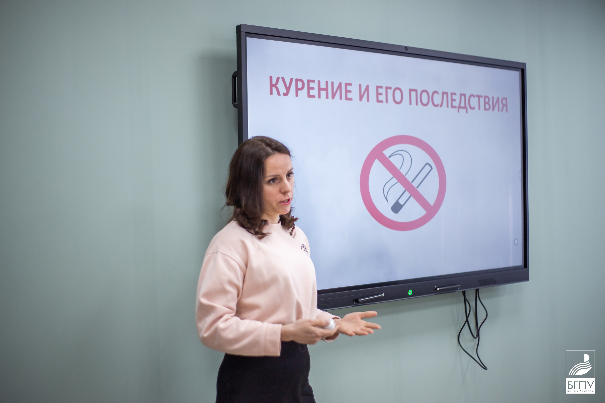 Ассистент Института дополнительного профессионального образования БГМУ Надежда Абдрашина в своем выступлении дала историческую справку о табакокурении, где отметила, что курение убило больше людей, чем все мировые войны и эпидемии.