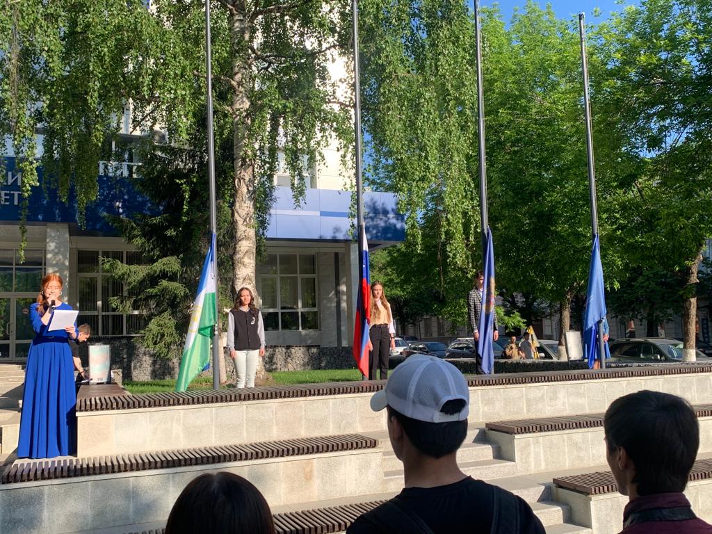 22 мая в Башкирском государственном педагогическом университете состоялась торжественная церемония поднятия государственного флага Российской Федерации и флагов Республики Башкортостан, Министерства просвещения России и Акмуллинского университета. В мероприятии приняли участие студенты и преподаватели Института физики, математики, цифровых и нанотехнологий вуза.