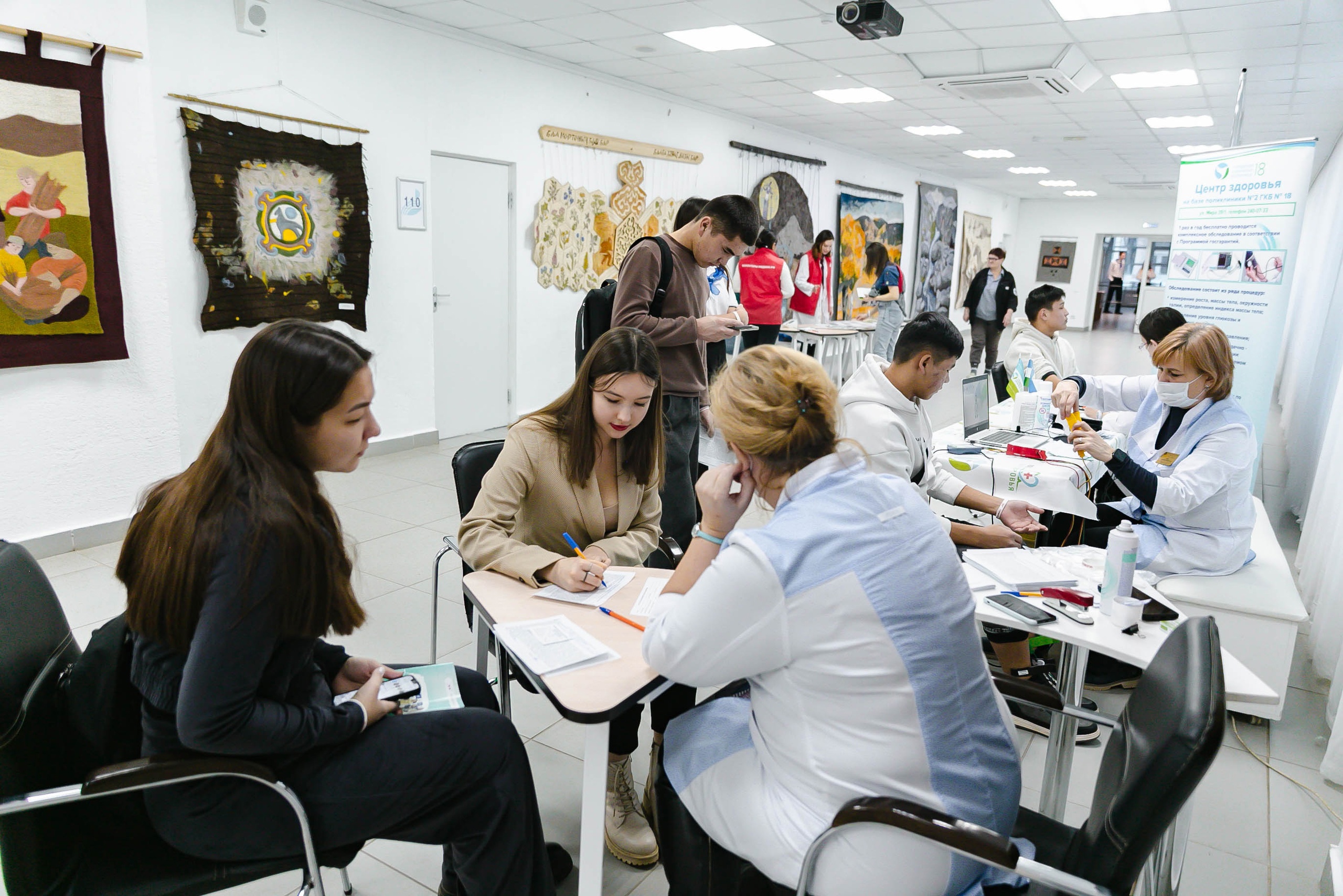 В белом зале Акмуллинского университета участники форума смогли пройти обследование организма. Врачи больницы №18 г. Уфы и волонтеры Башкирского медуниверситета всем желающим измеряли давление, делали электрокардиографию, проверяли анализ крови на холестерин, с помощью спирографии проверяли легкие. Прошедшие чек-ап организма получали справочный бланк на дальнейшее обследование.