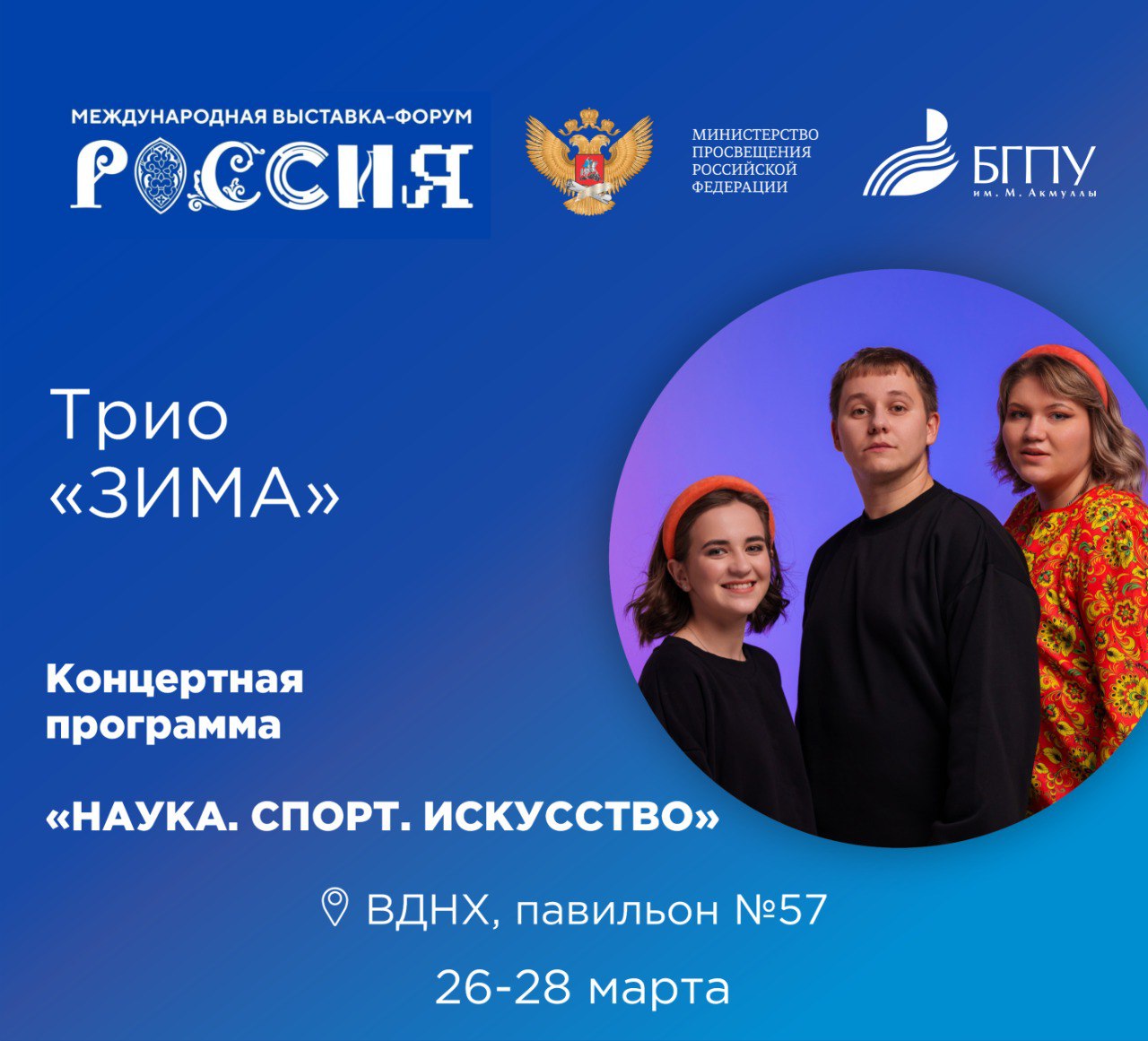 Также вокалисты трио «ЗИМА» выступят с концертной программой «Наука. Спорт. Искусство».