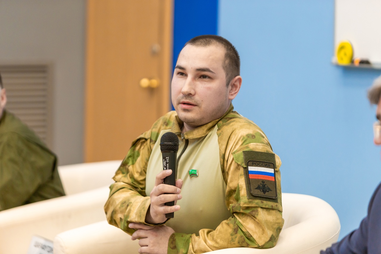 Ветераны рассказали студентам о своей службе в зоне Специальной военной операции. Айрат Шарафутдинов подчеркнул, что бойцам на передовой зачастую приходится жить и работать в очень тяжелых условиях. Поэтому очень важно помогать им в меру своих возможностей.  Айрат Анварович рассказал, что ранее уже служил по контракту и на его решение стать участников СВО повлияли кадры издевательств над пленными российскими военнослужащими. «Я почувствовал, что не могу этого допустить, и вместе с бывшими сослуживцами пошел в военкомат», – поделился он воспоминаниями.