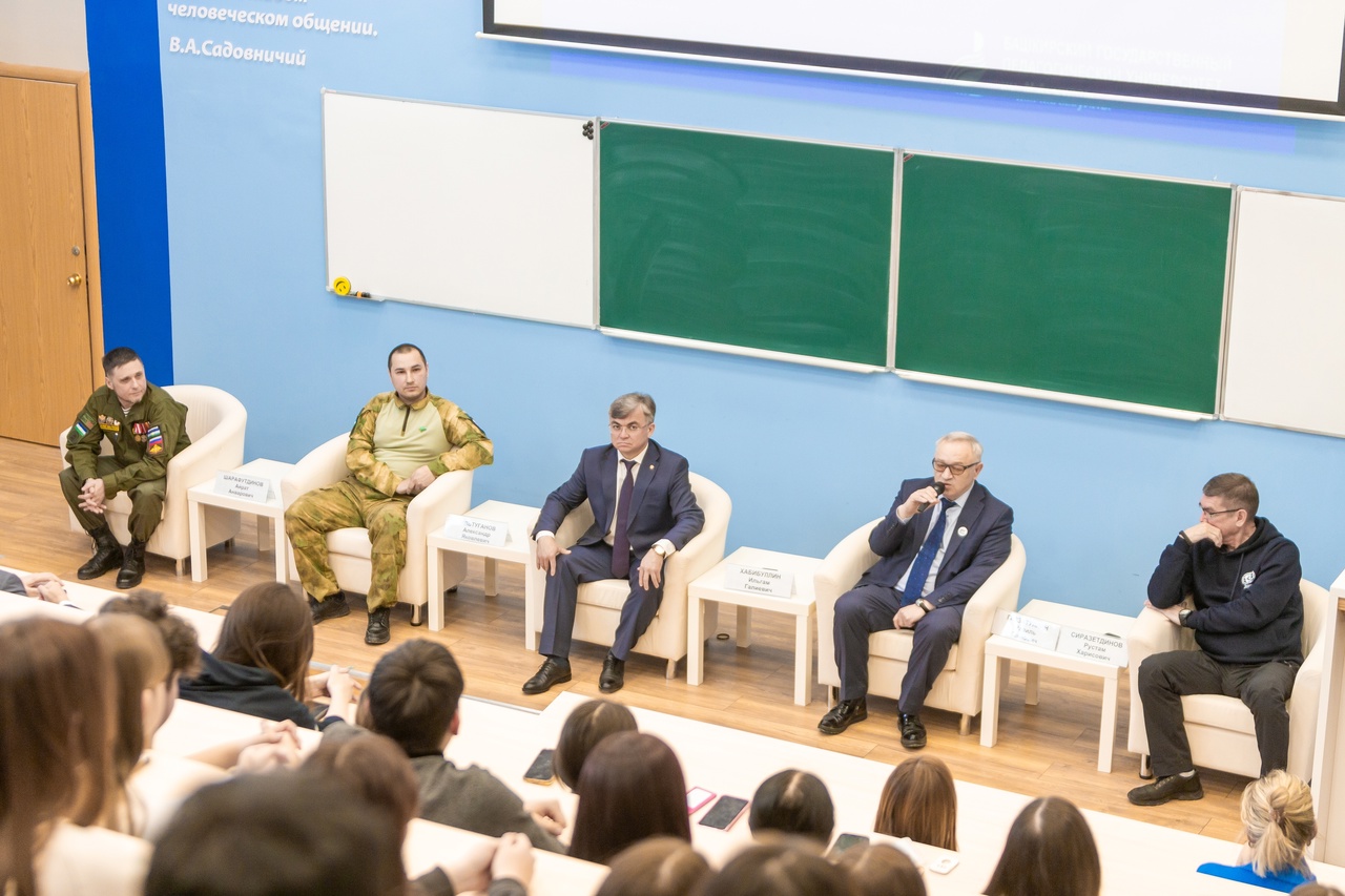2 апреля в Башкирском педуниверситете прошла встреча студентов с ветеранами Специальной военной операции и участниками гуманитарного конвоя, которые в марте доставляли гумпомощь в зону СВО.